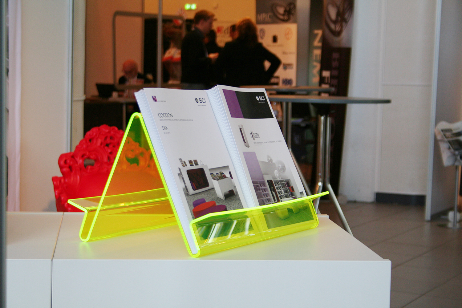 Les boîtes de présentation colorées d’Eurobib, les blocs index et les présentoirs de livres Wave ont également suscité l’attention, en particulier le présentoir Wave citron vert qui reflétait très joliment la luminosité du stand.