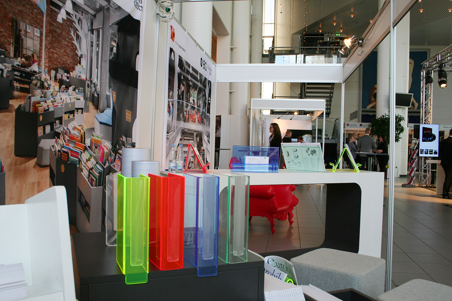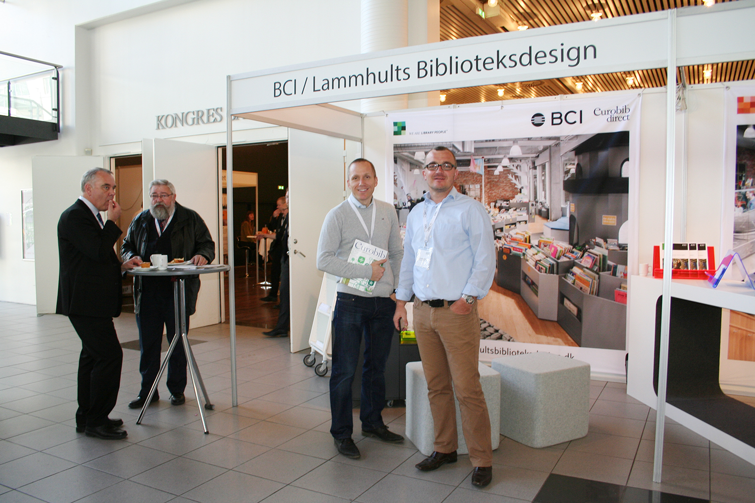 Nos bannières qui affichaient des images inspirantes de la bibliothèque de Herning ont éveillé la curiosité et attiré de nombreuses personnes sur notre stand. Les images « invitaient » en effet les visiteurs à venir se promener parmi le mobilier exaltant et personnalisé que nous avons fourni pour équiper la bibliothèque de Herning.