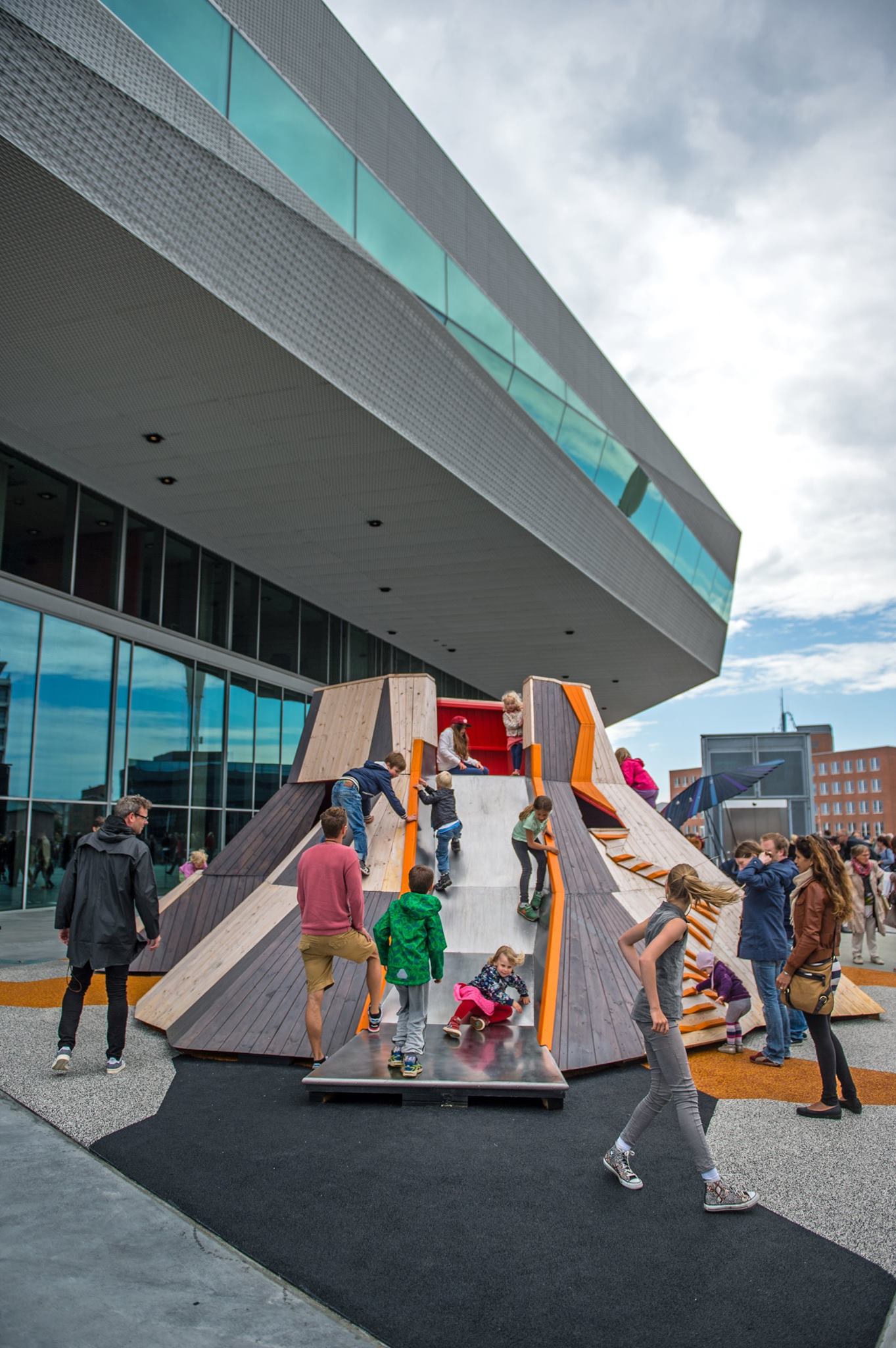 La bibliothèque met l’accent sur les médias numériques, mais les médias traditionnels tels que les livres, livres audio, journaux, magazines, films, musique et jeux y occupent également une place prépondérante. Ils sont présentés selon une structure claire et logique permettant aux visiteurs déambuler aisément à travers les quelque 17 500 m2 que comptent la bibliothèque et le centre de services.