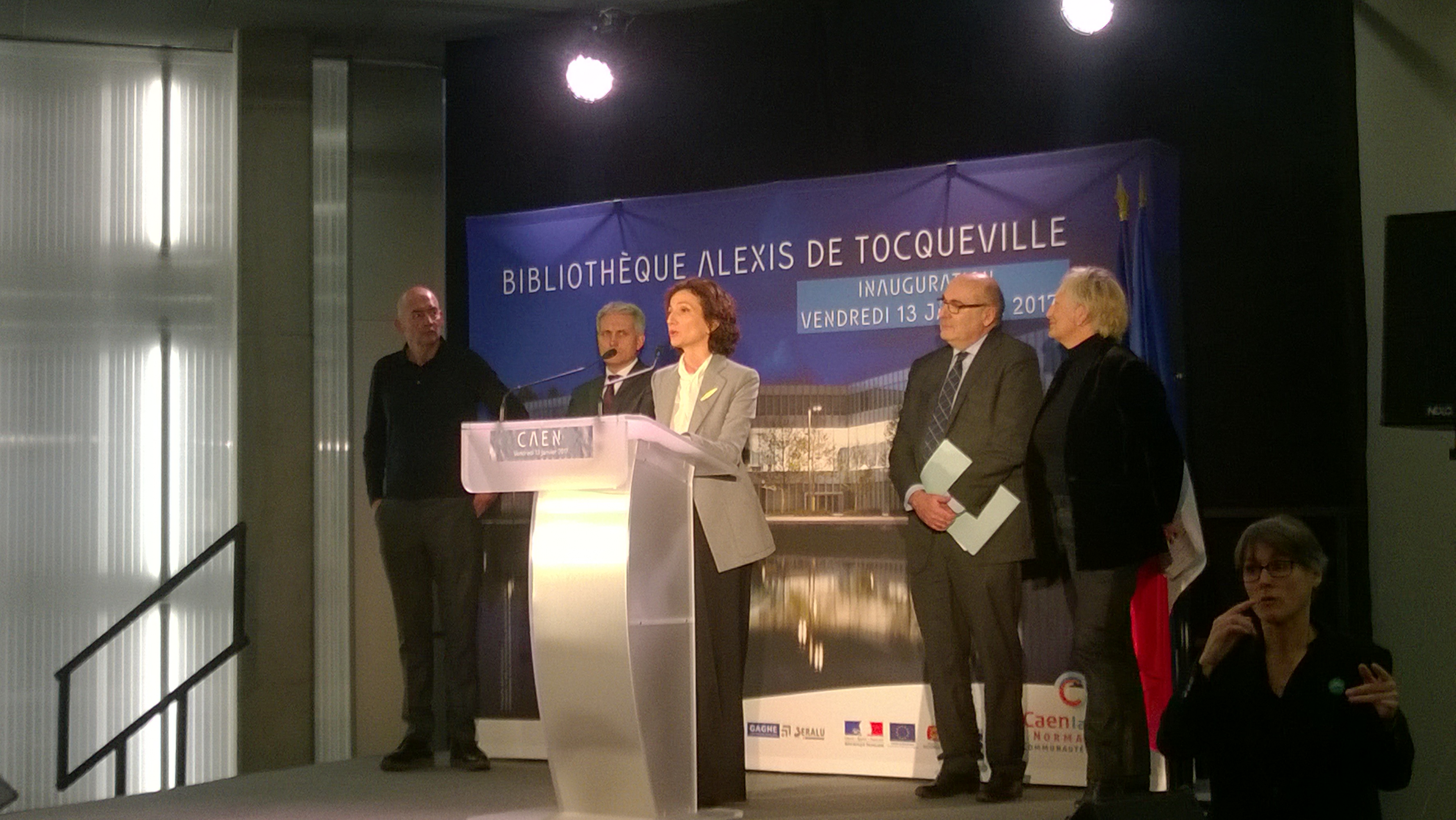 La nouvelle bibliothèque Alexis de Tocqueville de Caen-la-Mer, dessinée par l’architecte primé Rem Koolhaas du célèbre cabinet d’architectes international OMA, a été inaugurée le 13 janvier 2017 en présence de Madame la Ministre de la culture Audrey Azoulay, qui n'a pas retenu ses mots pour évoquer le coté exceptionnel de cette réalisation phare. « C'est l'une des plus belles bibliothèques de France » a-t-elle déclaré.