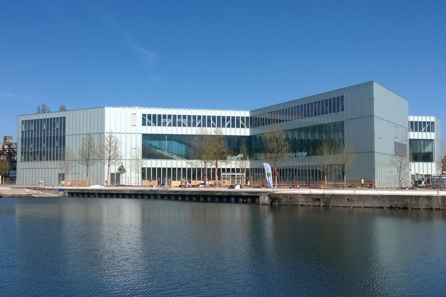 Le bâtiment, situé face au bassin Saint-Pierre à Caen, s’étend sur une surface de 12 000 m² répartie sur 4 niveaux. Ouvert à l’ouest à l’est, très lumineux grâce à sa faille horizontale totalement transparente et libre de toute structure, il est pensé comme un forum urbain.