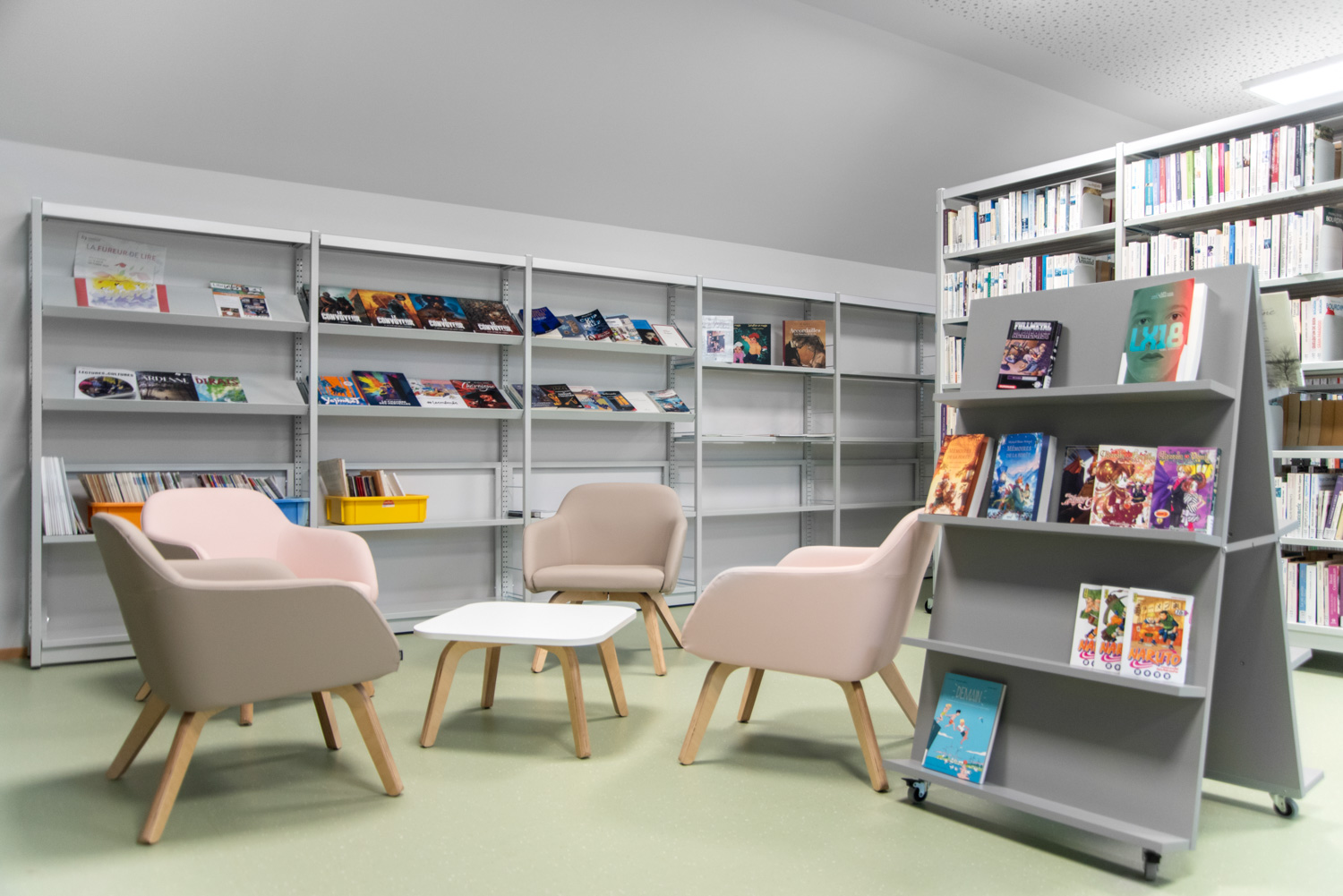 Disponible en quatre hauteurs différentes, ce bac à albums peut être utilisé de manière créative pour créer une séparation entre plusieurs zones. Placés les uns à côté des autres, les bacs créent un bel espace de consultation pouvant accueillir un grand nombre de livres et offrant une vue d’ensemble des médias proposés.