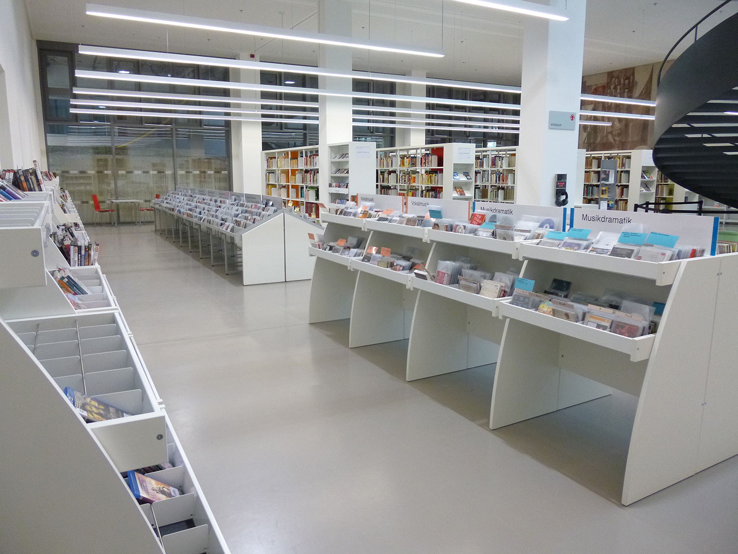Les lignes arrondies du bac à médias audiovisuels en bois Sinus créeront une atmosphère du plus bel effet dans votre bibliothèque. Il se décline en 4 modèles différents. Ce bac à médias est disponible en modèle simple ou double face, avec à chaque fois un ou deux niveaux de présentation pour les médias.
