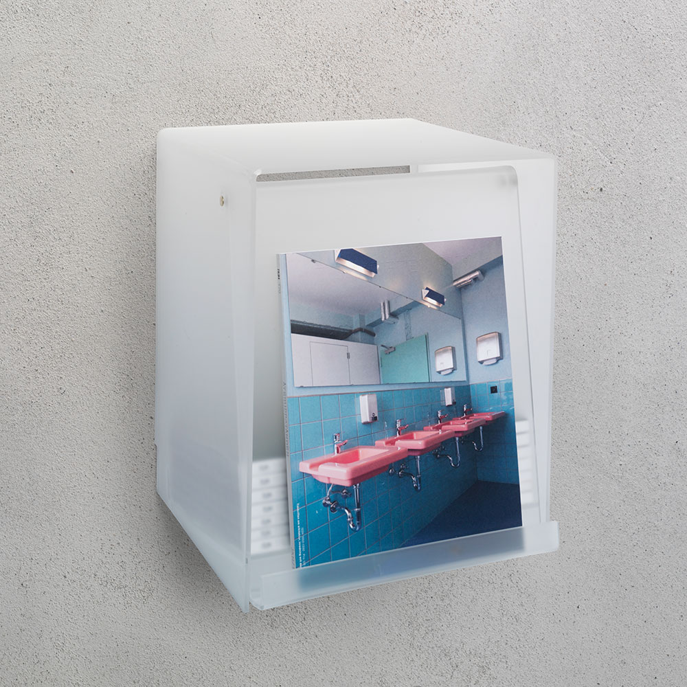 Casiers en acrylique destinés à la présentation et au rangement des périodiques.