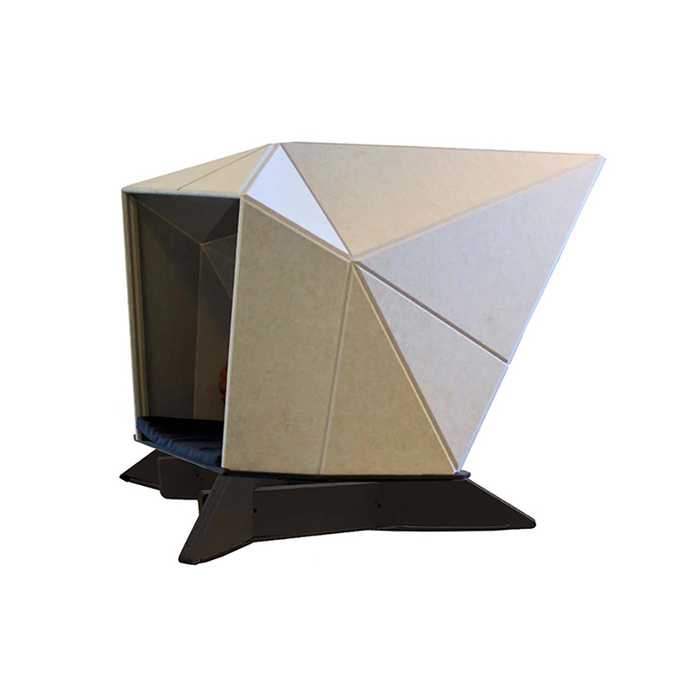 HabiCave est un design danois sculpté en s'inspirant de l'origami japonais. La simplicité et l'esthétique réfléchie font appel aux sens et le matériau acoustique contribue non seulement à réduire le niveau de bruit à l'intérieur de la grotte mais aussi dans la pièce.