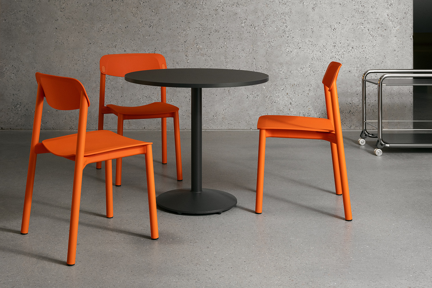 La chaise Penne peut être utilisée à l'intérieur comme à l'extérieur des bibliothèques. Son piètement est fabriqué à partir de tubes d'aluminium revêtus de poudre, tandis que l'assise et le dossier sont en chêne moulé, en frêne ou en polypropylène.