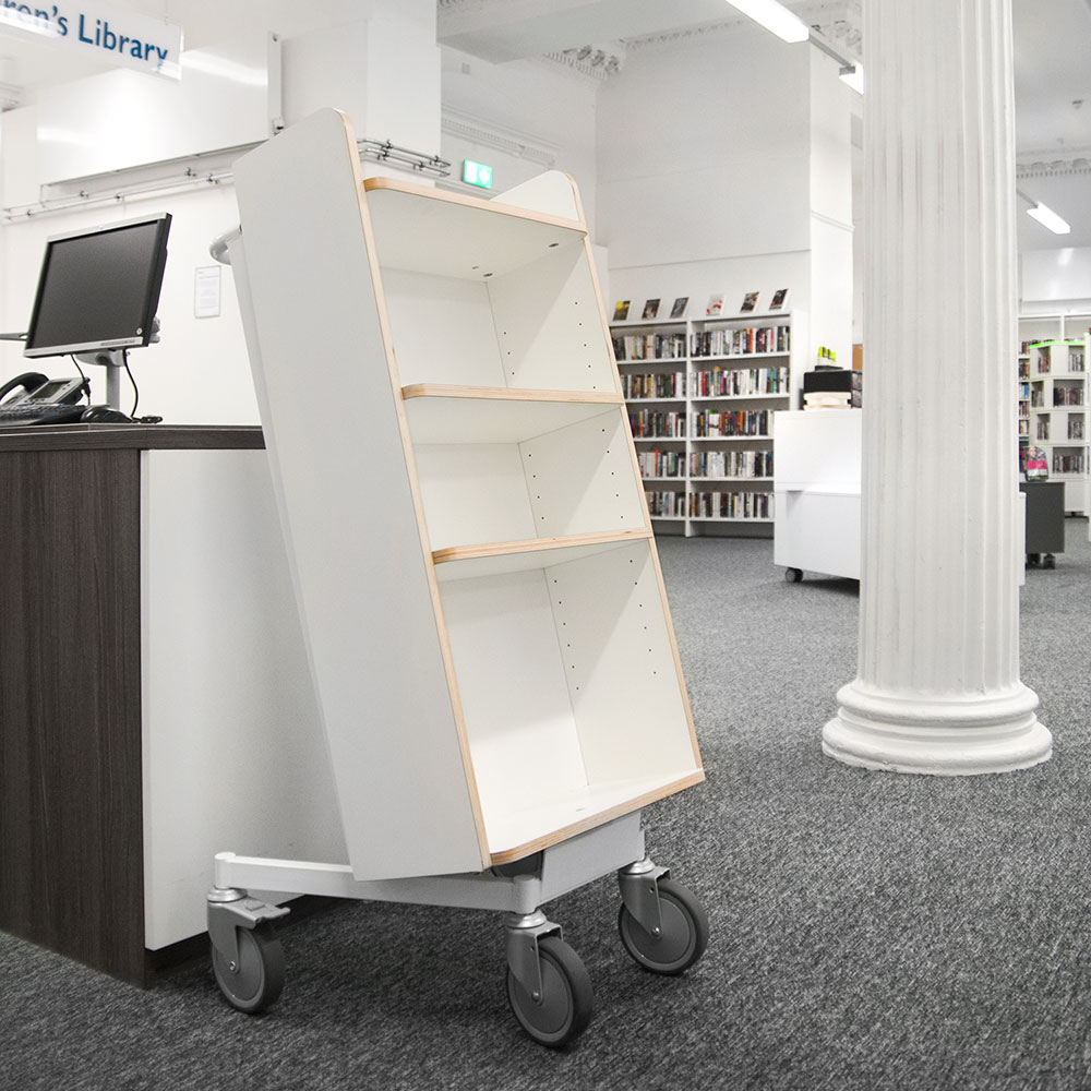 Nous utilisons du contreplaqué de bouleau – ici avec les bords visibles – pour créer une surface à la fois durable et robuste. Idéal pour les environnements de bibliothèque les plus exigeants !