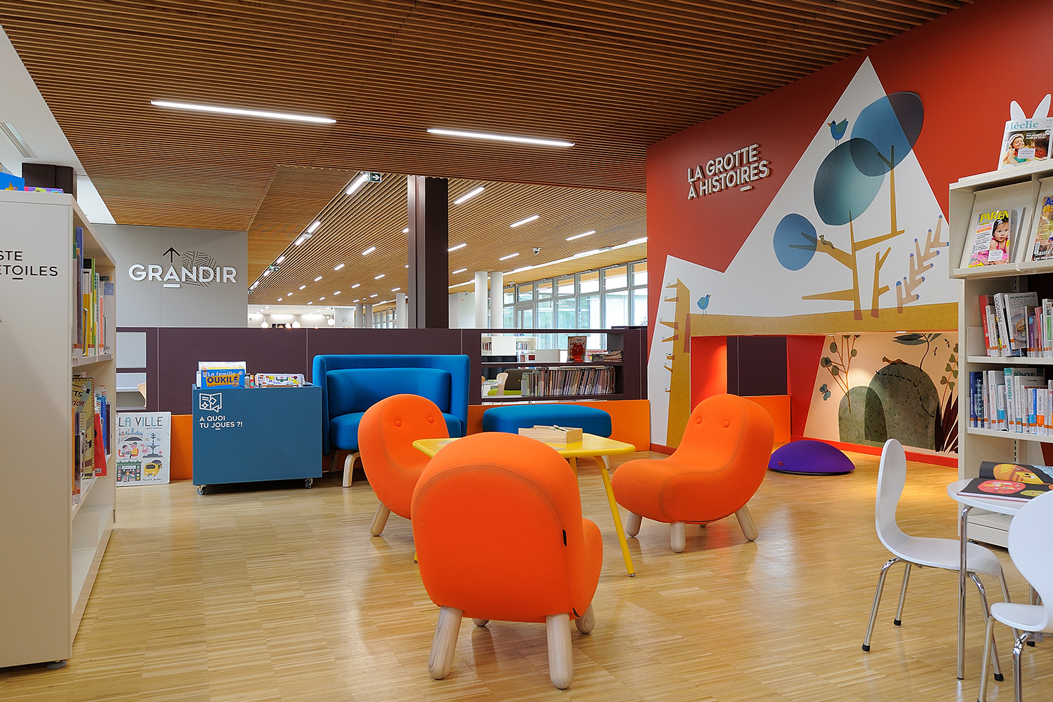 BOB ajoute une atmosphère amusante et charmante au design intérieur de la bibliothèque avec sa simplicité et son confort.