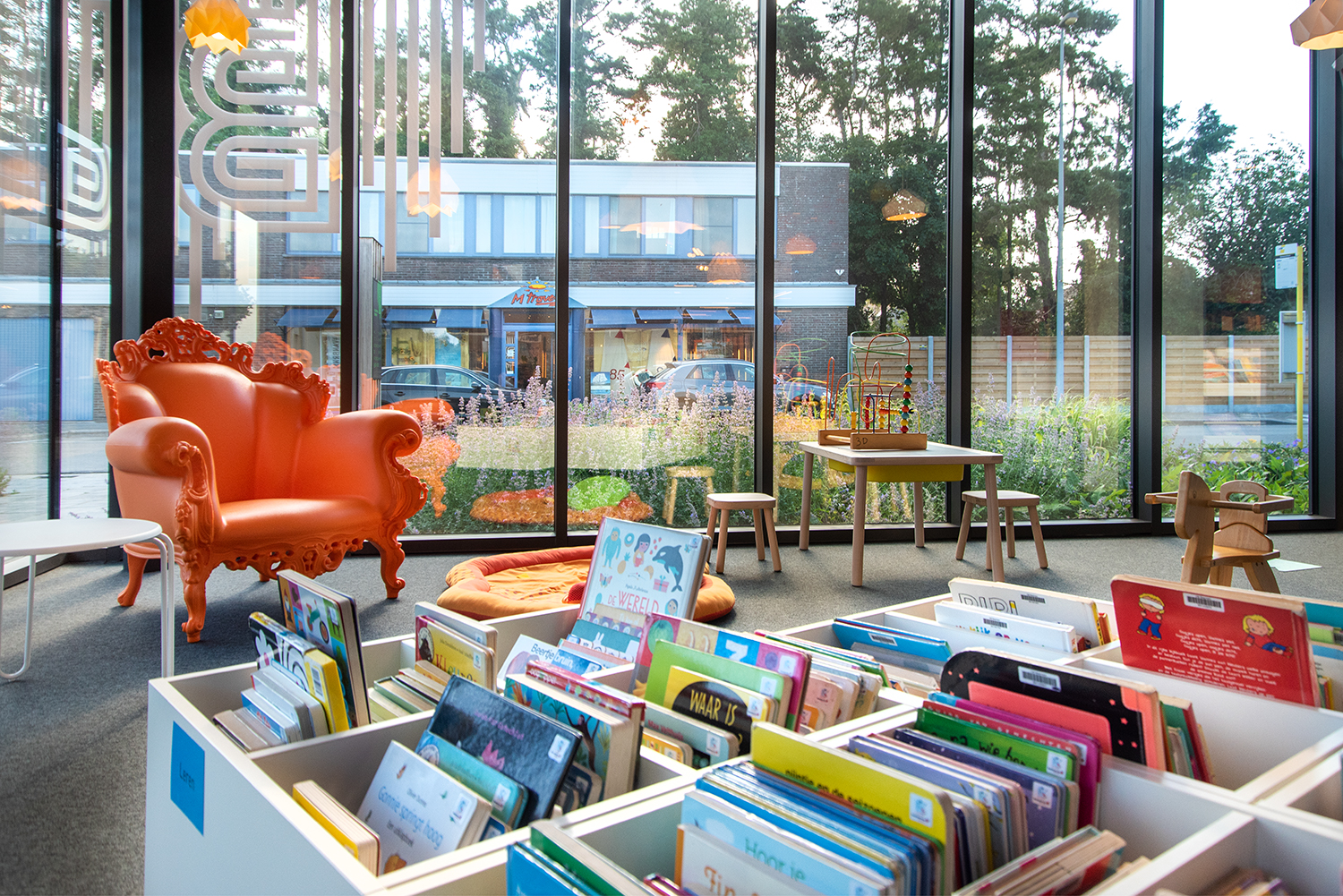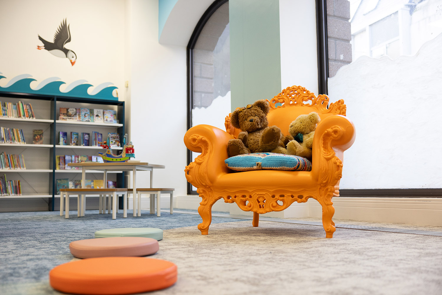 Grand fauteuil pour adultes et un cadre idéal pour raconter des histoires aux enfants.