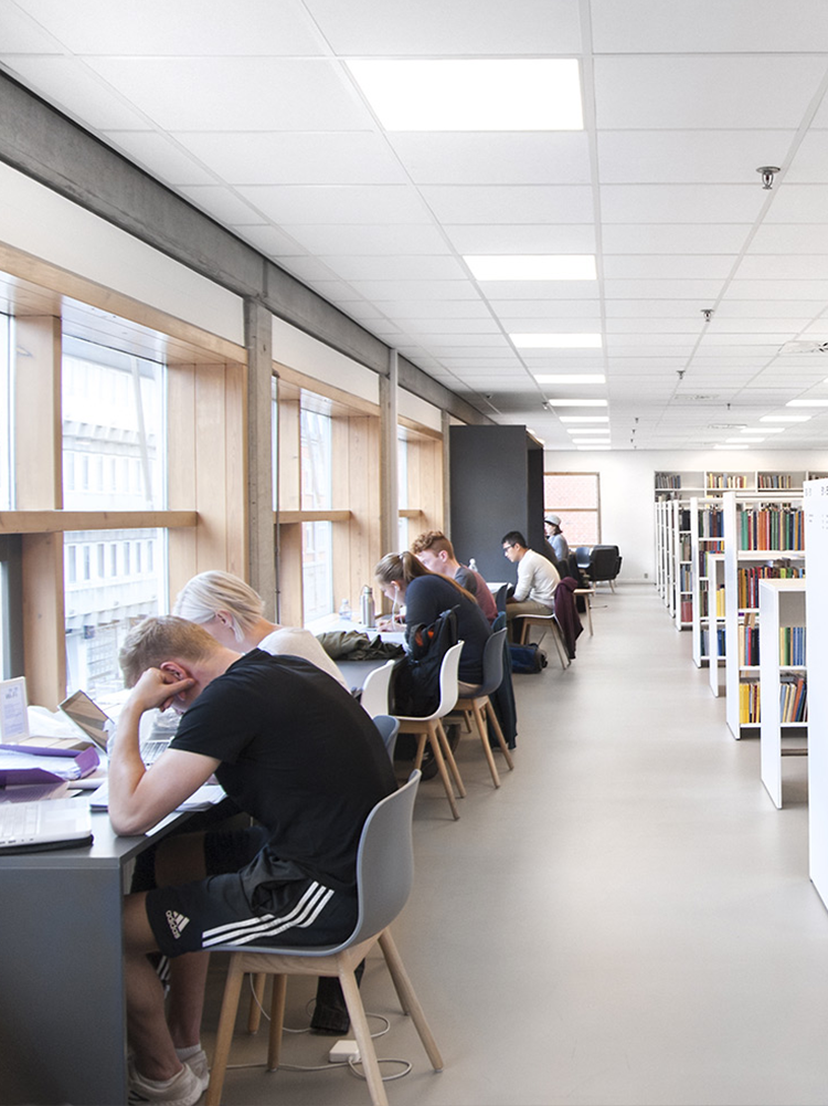 Il est important que l'élève dispose de place nécessaire pour étudier à la bibliothèque, que ce soit individuellement ou en groupe. Les espaces dotés de canapés et de fauteuils confortables invitent au calme et à la concentration - un élément indispensable pour les journées scolaires bien remplies. Assurez-vous d'avoir des tables de travail à la bonne hauteur et des chaises confortables placées à proximité des documents et autres outils de travail essentiels. Les zones d'étude doivent être à la fois confortables et fonctionnelles pour que l'élève puisse se concentrer et réaliser son travail.