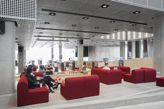 La bibliothèque forme un espace vivant et animé qui estompe les frontières entre l'espace urbain et la nature environnante. Les visiteurs ont diverses possibilités de fréquenter, de découvrir et de jouer dans des lieux lumineux et aérés, ce qui leur procure le sentiment d'être en plein air.