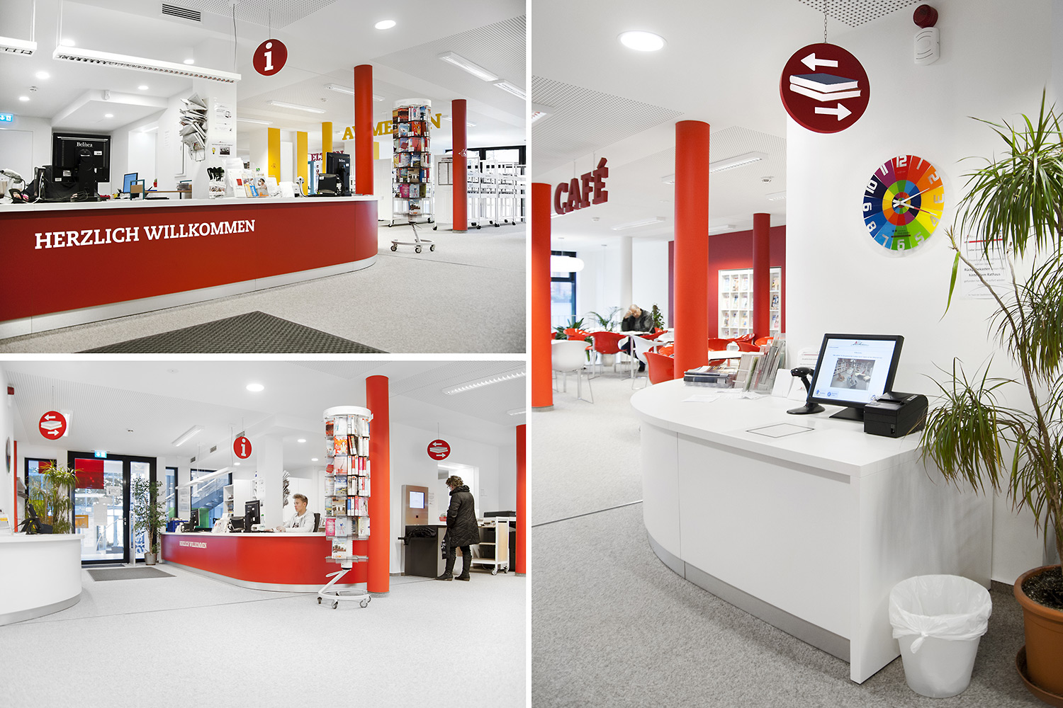 La zone d’accueil donne au visiteur sa première impression sur la bibliothèque