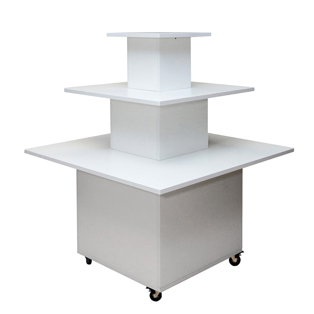 Podium fonctionnel et polyvalent pour la présentation de livres et/ou autres médias. Idéal pour attirer l’attention à l’entrée ou pour créer des zones de présentation dans votre bibliothèque.