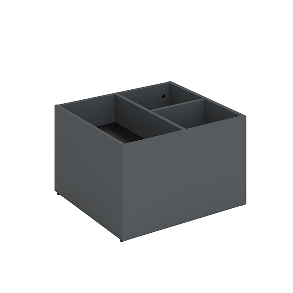 Le podium posséde un couvercle amovible et des séparations astucieuses permettant de diviser la partie supérieure en 2 à 6 compartiments, en fonction de la taille des livres.