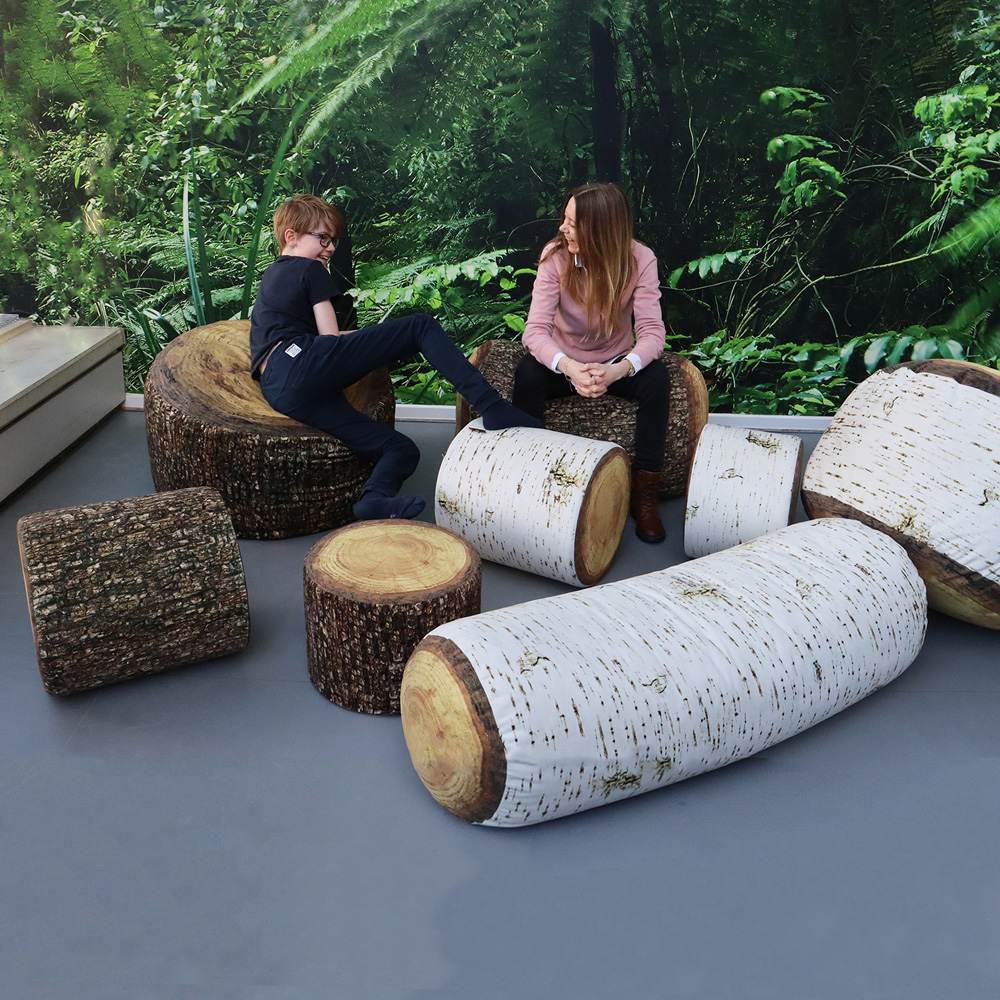 Les poufs vous surprendront par leur moelleux inattendu et leur ressemblance frappante avec une véritable bûche de bois. Ils vous invitent à vous y enfoncer et à vous y détendre.