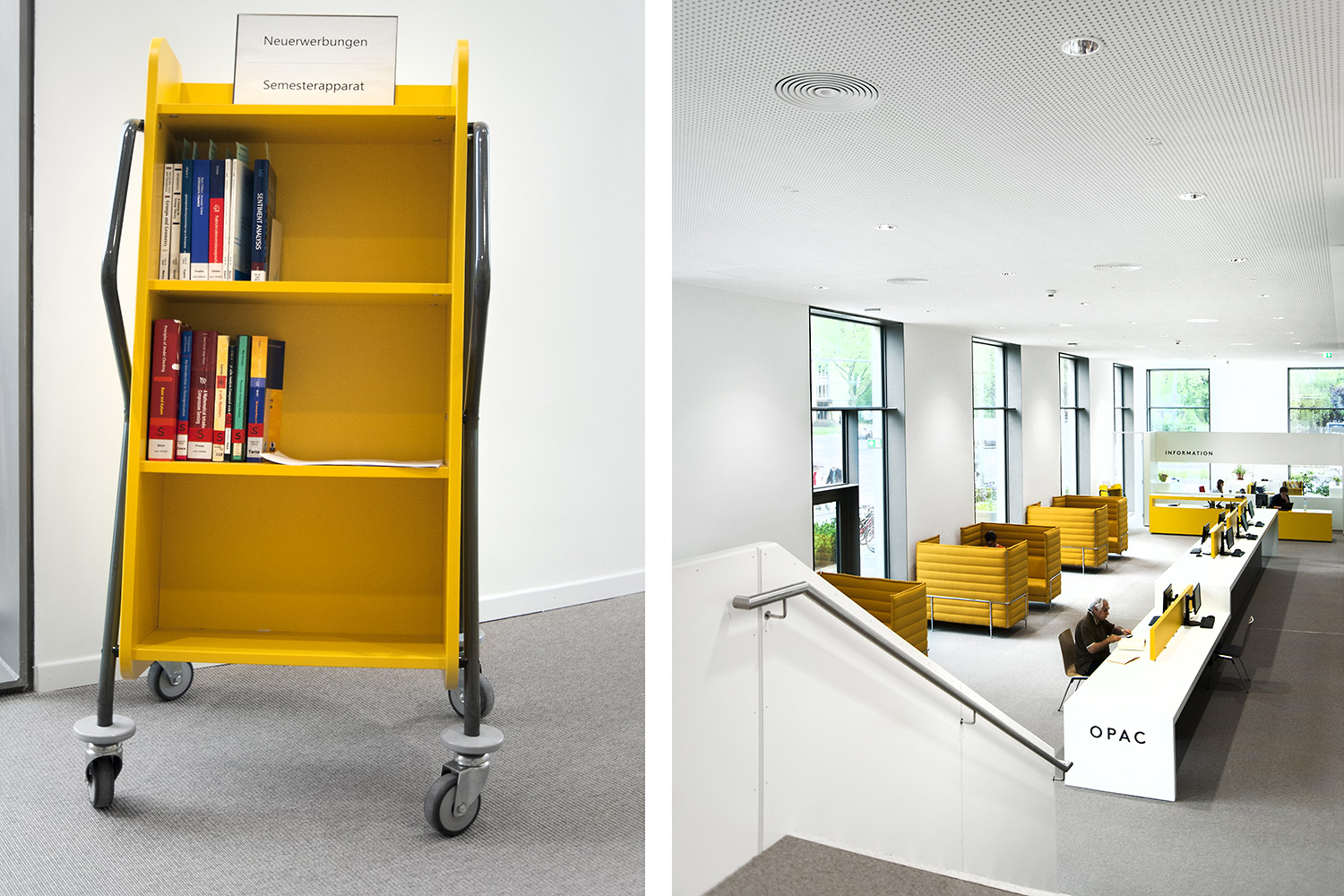 La nouvelle bibliothèque centrale de l’université d’Heidelberg a été aménagée dans deux étages du nouveau bâtiment érigé sur le site du « Neuenheimer Feld ».