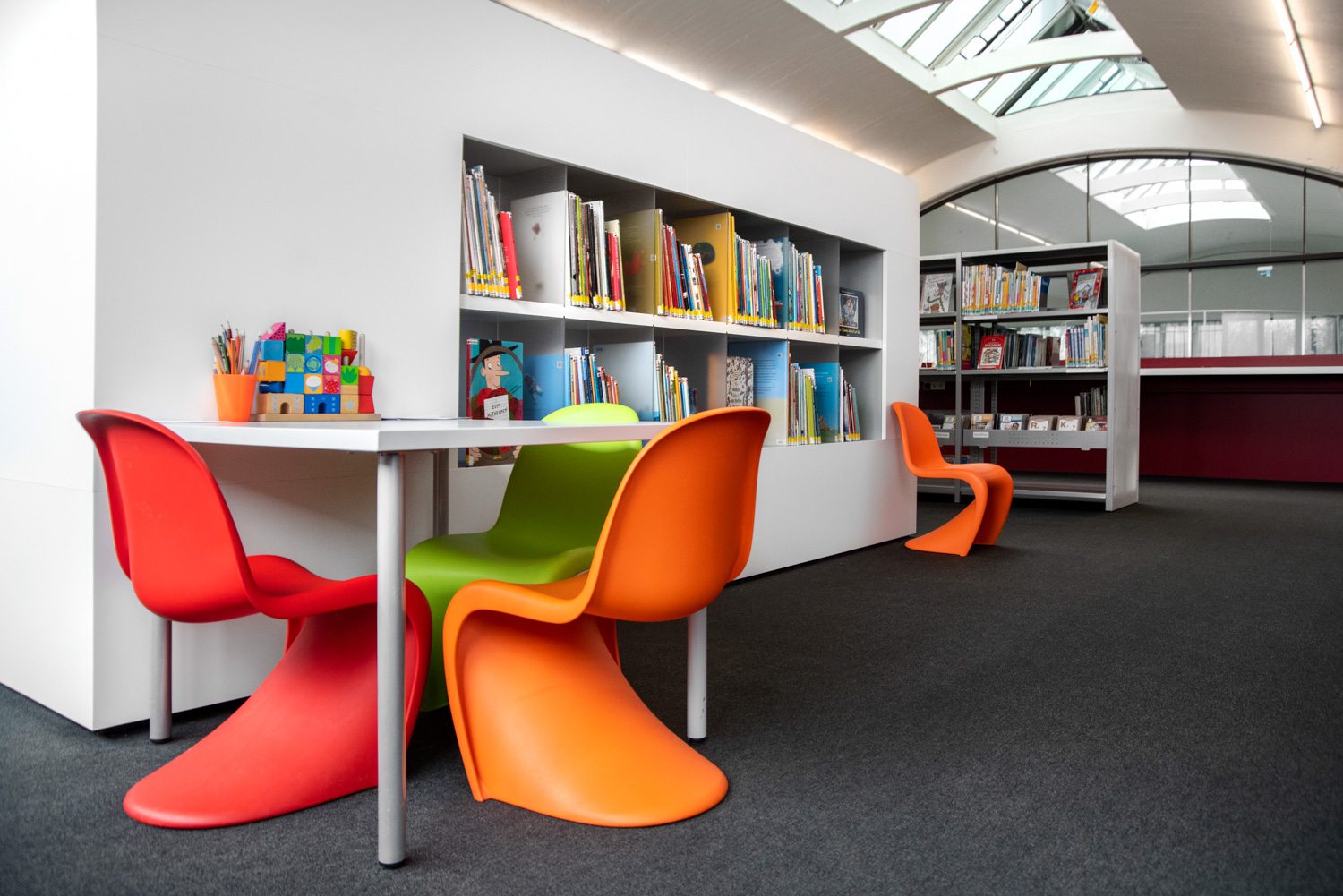 Les architectes du projet de Mössingen l'ont mis particulièrement bien en œuvre, avec beaucoup de précision dans les détails. Inondée de lumière, tout en étant chaleureuse et ludique, la bibliothèque de Mössingen offre à ses visiteurs des moments agréables et un immense lieu de rencontre.