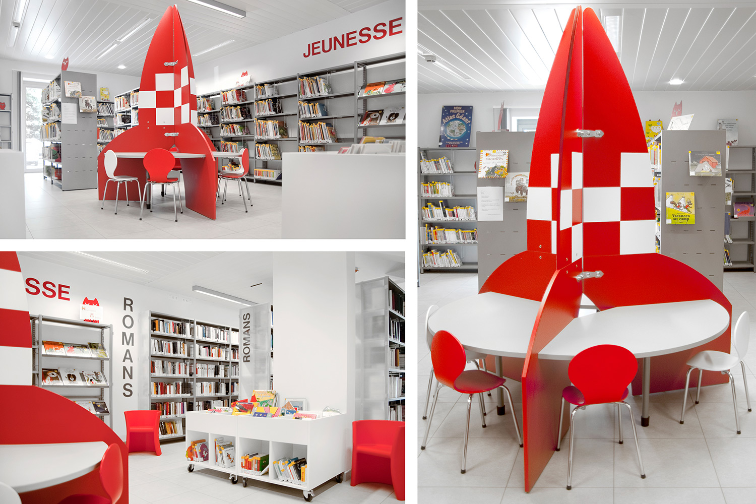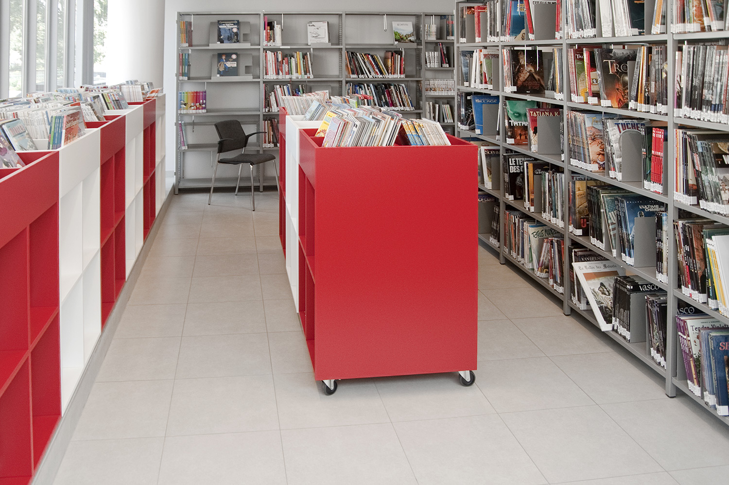 Le système de bibliothèques doté de parties latérales amovibles en plexiglas, l’espace ludique réservé aux enfants et la ludothèque complétée par d’agréables espaces comprenant des sièges et des zones dédiées à l’étude font de cette bibliothèque un lieu particulièrement inspirant pour les visiteurs et les collaborateurs.