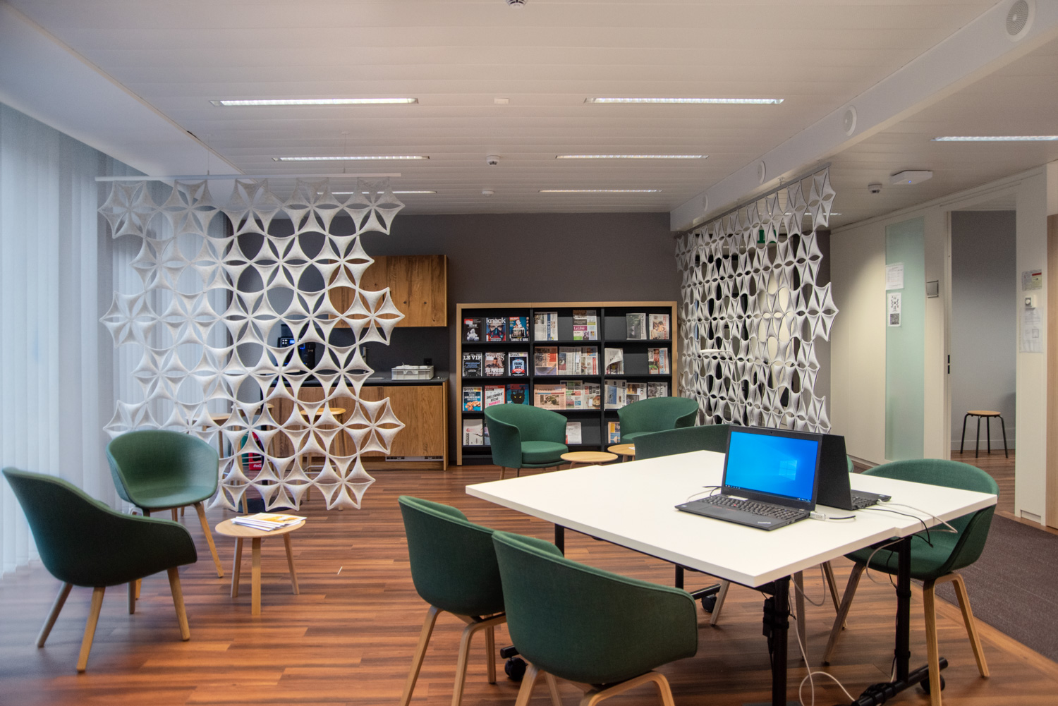 La nouvelle salle de lecture a été conçue pour attirer davantage de visiteurs et offrir aussi bien la possibilité de travailler dans la bibliothèque que celle de lire tranquillement un journal avec une tasse de café.