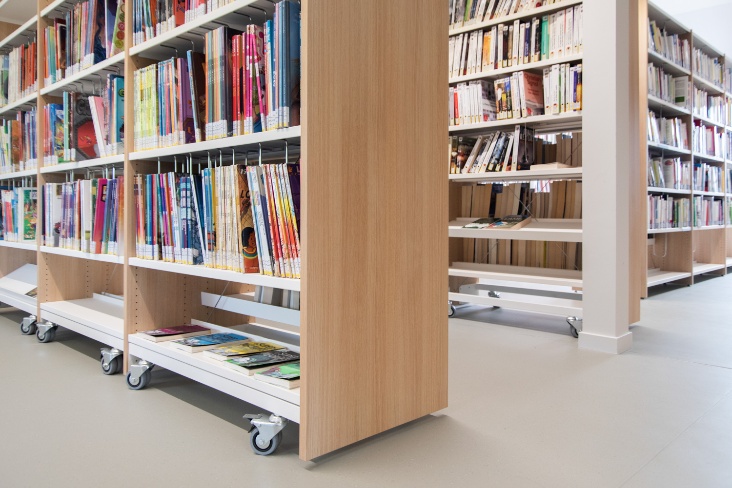 La bibliothèque publique de Florenville fait partie d'un projet municipal qui vise à réunir différents publics dans un même bâtiment. À l'entrée se trouve un large comptoir d'accueil facile d'accès pour les personnes à mobilité réduite. Les rayonnages en bois sont harmonieusement combinés avec des meubles et assises colorés.