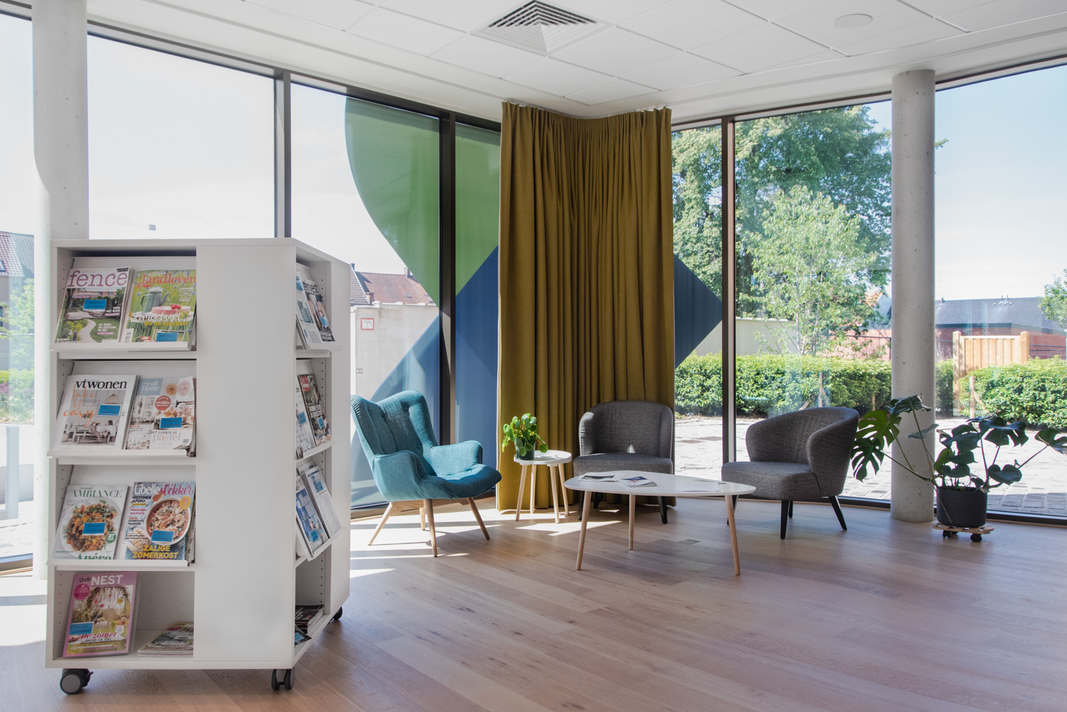 La conception de la nouvelle bibliothèque, installée dans une ancienne malterie (mouterij en flamand), répond à la tendance actuelle qui consiste à se concentrer sur l'expérience et la rencontre. La bibliothécaire Elke Vandewalle déclare: « Nous avons créé des assises confortables dans divers endroits où nous voulons encourager les utilisateurs de nos bibliothèques à « s’attarder un moment ». La salle de lecture est par ailleurs un espace indépendant et confortable, dont les heures d'ouverture sont plus longues que celles de la bibliothèque elle-même. En même temps, nous avons essayé de créer autant de perméabilités que possible. Nous avons associé autant que faire se peut les espaces avec des plafonds assez bas à des étagères plus basses."