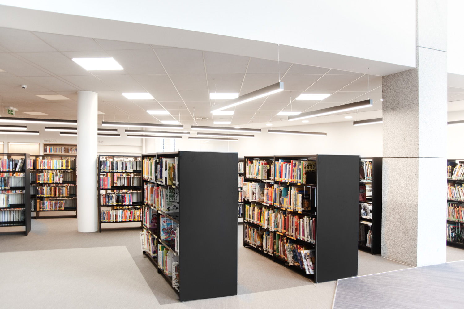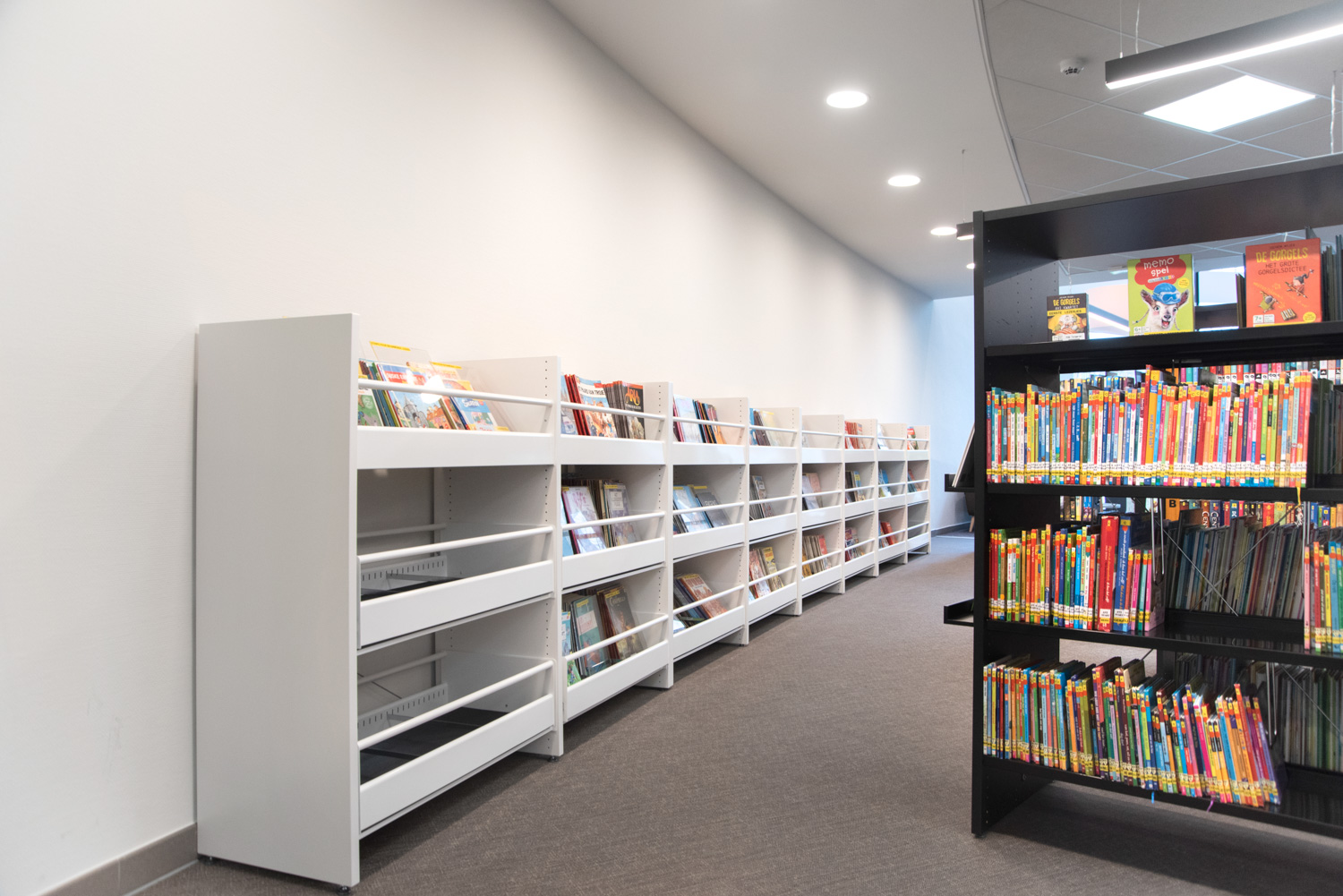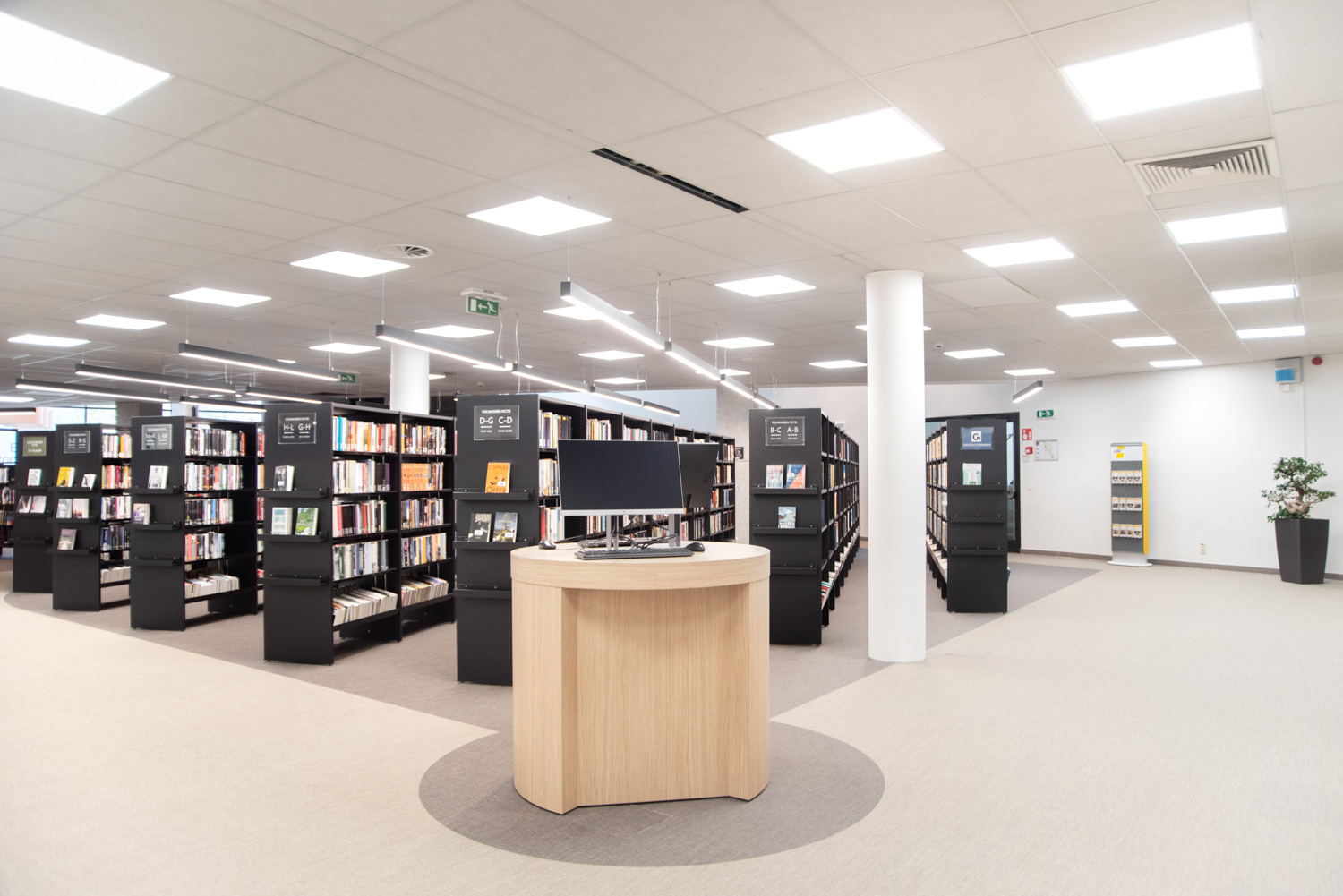 La bibliothèque a été réaménagée en un lieu de vie agréable, où il fait bon séjourner et se détendre. Les visiteurs ne viennent pas seulement à la bibliothèque pour emprunter des livres ; ils la fréquentent aussi pour étudier, lire le journal ou simplement bavarder. Les nouveaux espaces de détente plus confortables sont parfaits à cet effet. Les nouvelles acquisitions sont présentées et mises en valeur à l'entrée, ainsi que sur certains panneaux d'extrémité des rayonnages.