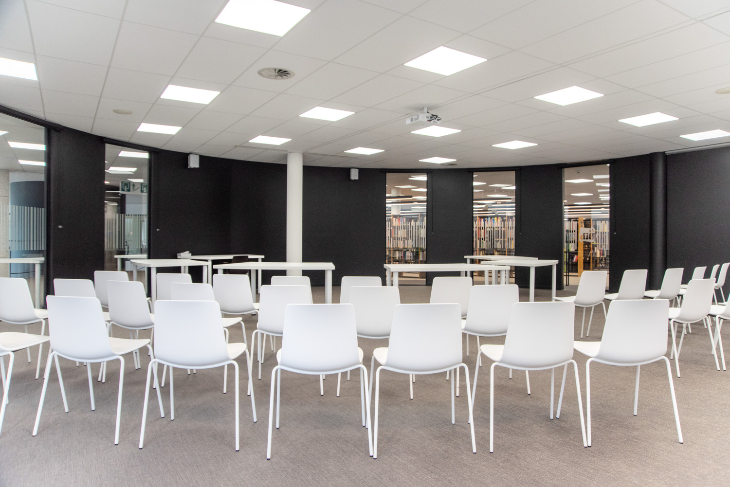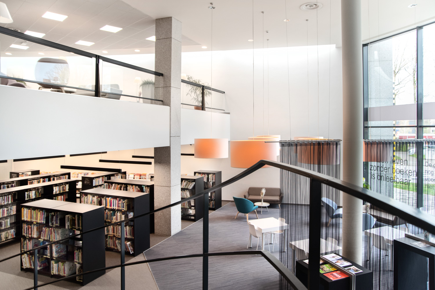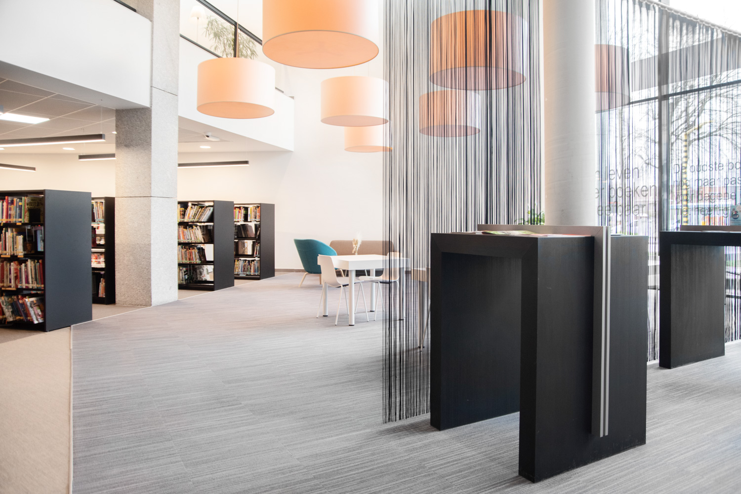 La bibliothèque a été réaménagée en un lieu de vie agréable, où il fait bon séjourner et se détendre. Les visiteurs ne viennent pas seulement à la bibliothèque pour emprunter des livres ; ils la fréquentent aussi pour étudier, lire le journal ou simplement bavarder. Les nouveaux espaces de détente plus confortables sont parfaits à cet effet. Les nouvelles acquisitions sont présentées et mises en valeur à l'entrée, ainsi que sur certains panneaux d'extrémité des rayonnages.