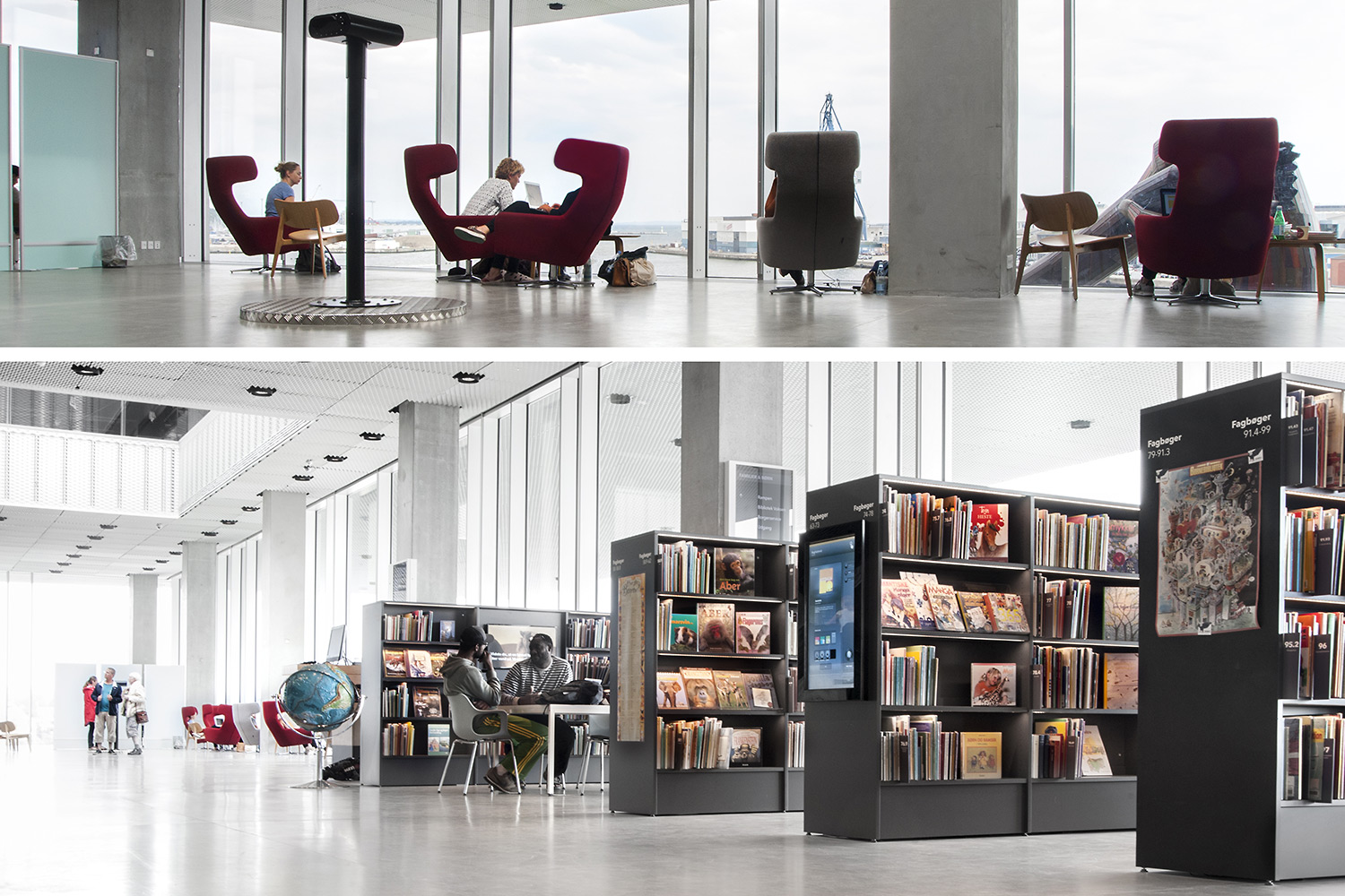 La bibliothèque de Dokk1 fait partie des plus prestigieuses bibliothèques au monde. Il suffit de franchir l’entrée principale et de découvrir son environnement futuriste pour s’en rendre compte au premier coup d’œil. Le bâtiment ultramoderne, qui abrite non seulement la bibliothèque, mais aussi un centre multimédia et des services aux citoyens, prend les allures d’un immense centre dédié aux connaissances et à la culture. L’affluence prévue devrait avoisiner le million d’utilisateurs chaque année.