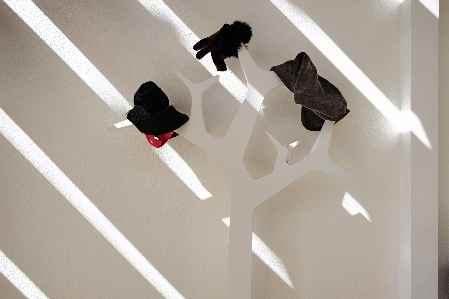 Pour mettre en valeur ces touches de vert, le système de rayonnage a été choisi dans une laque blanche pure et brillante.