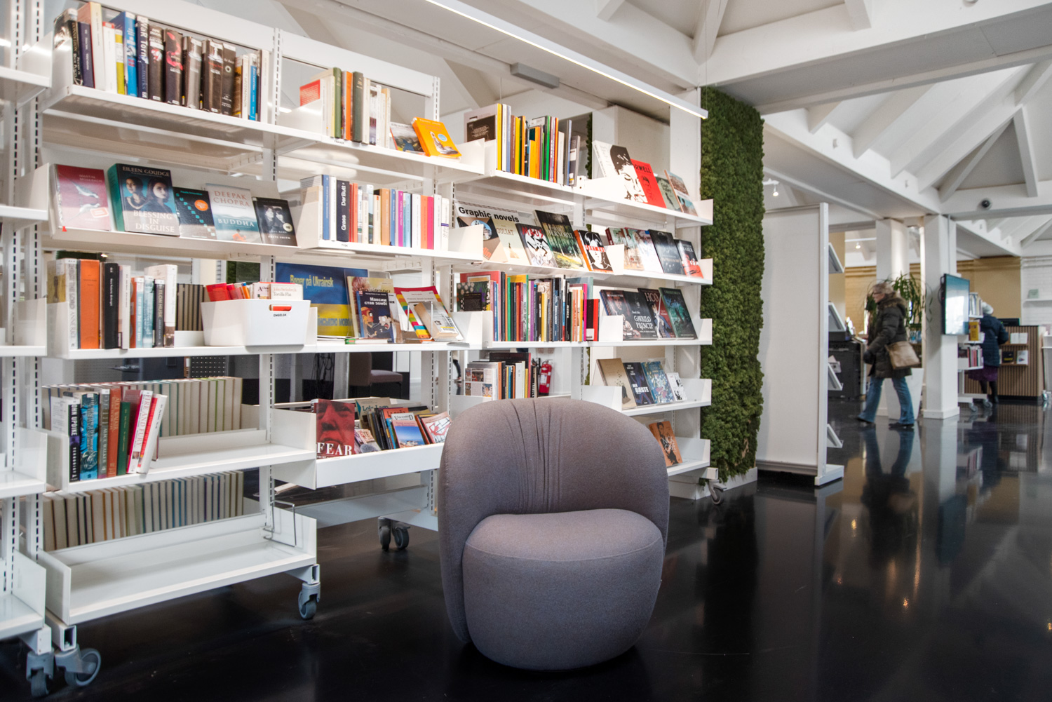 Auparavant, les meubles étaient placés très près les uns des autres et il était difficile de circuler et de se repérer dans les différents espaces de la bibliothèque. Aujourd'hui, un nouveau mobilier et un réaménagement de ses collections donnent une nouvelle vie à la bibliothèque. Par exemple, les murs et certains meubles de la bibliothèque ont des couleurs chaudes et douces qui s'harmonisent avec les tables et les étagères en chêne de l'ensemble du lieu. De nouveaux pôles d'exposition et des zones de détente confortables ont été introduits dans les espaces jeunesse et adulte. Il est ainsi plus agréable pour les visiteurs de séjourner dans la bibliothèque et de s'y repérer plus aisément.