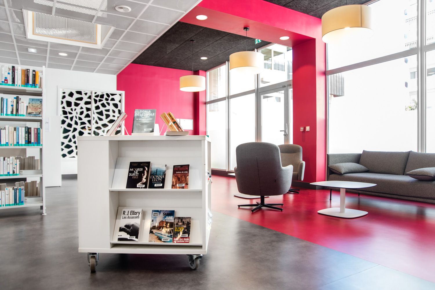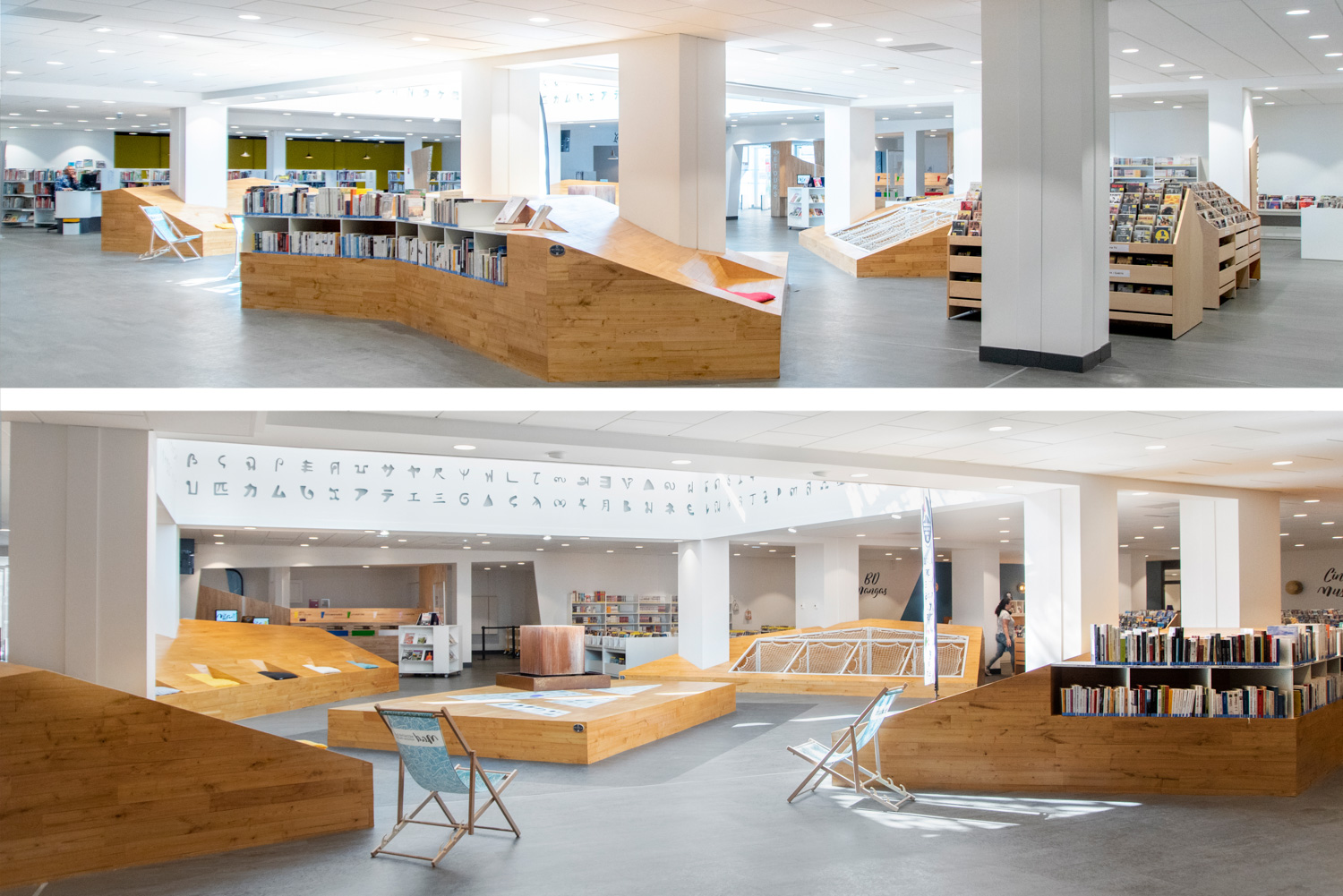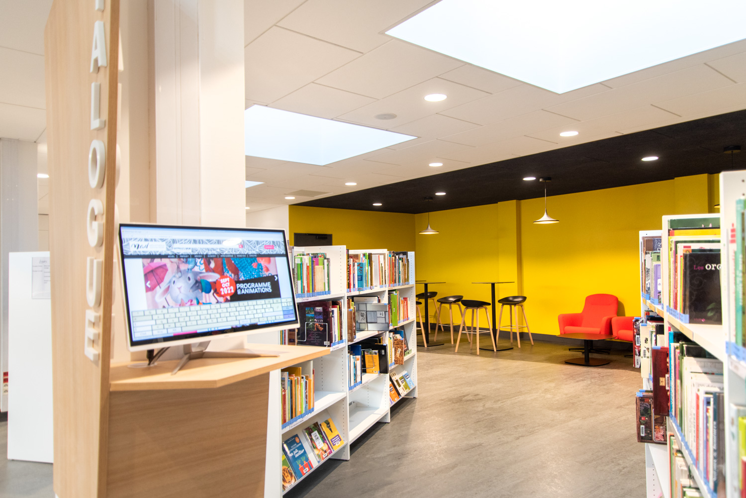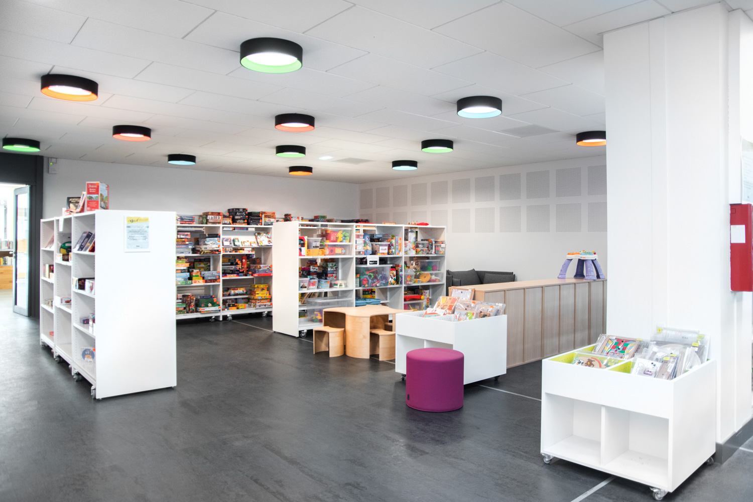 La médiathèque Alphonse Daudet vous accueille et vous séduit par une forte présence de bois, avec notre gamme Lingo. Couleurs acidulées et bois laqué blanc ou naturel forment un bel ensemble.