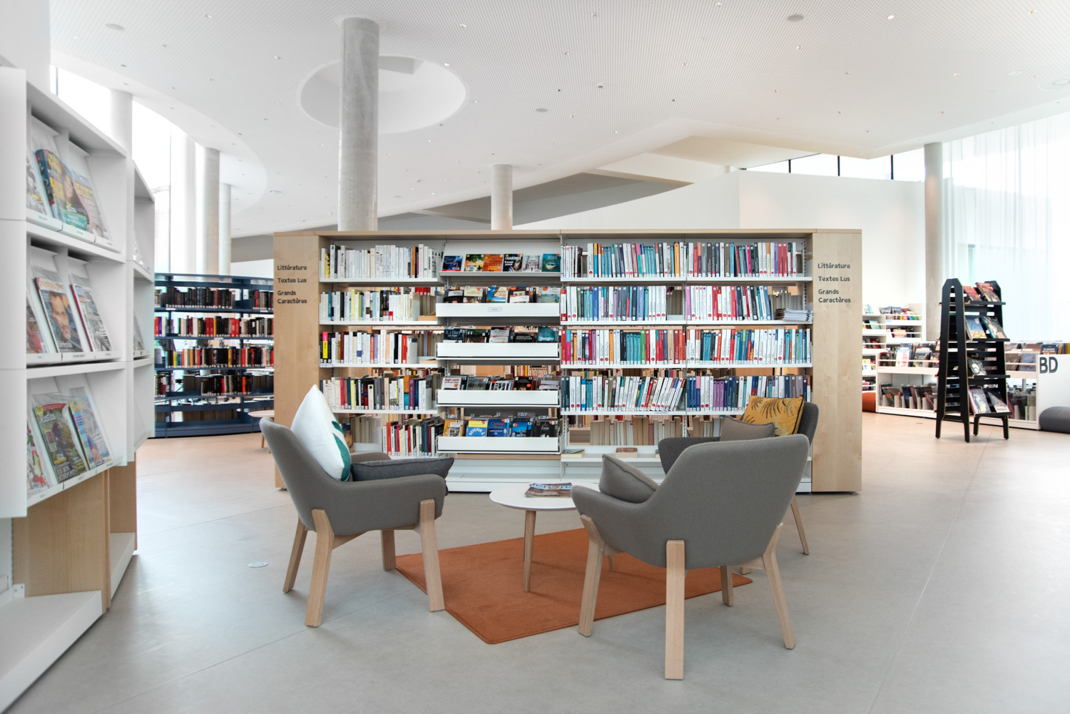 Ce nouvel équipement, qui s’inscrit dans la modernisation du bassin lecture Nord, est pensé comme un lieu ouvert sur son environnement, avec de nouveaux espaces comme une salle dédiée au jeu sous toutes ses formes, une salle d'animation et un patio propice à la lecture. La gamme Classic London accompagne ces nouveaux espaces, aux nuances blanches, orangées ou bleues pour un mobilier tout en rondeur dédié au polar.