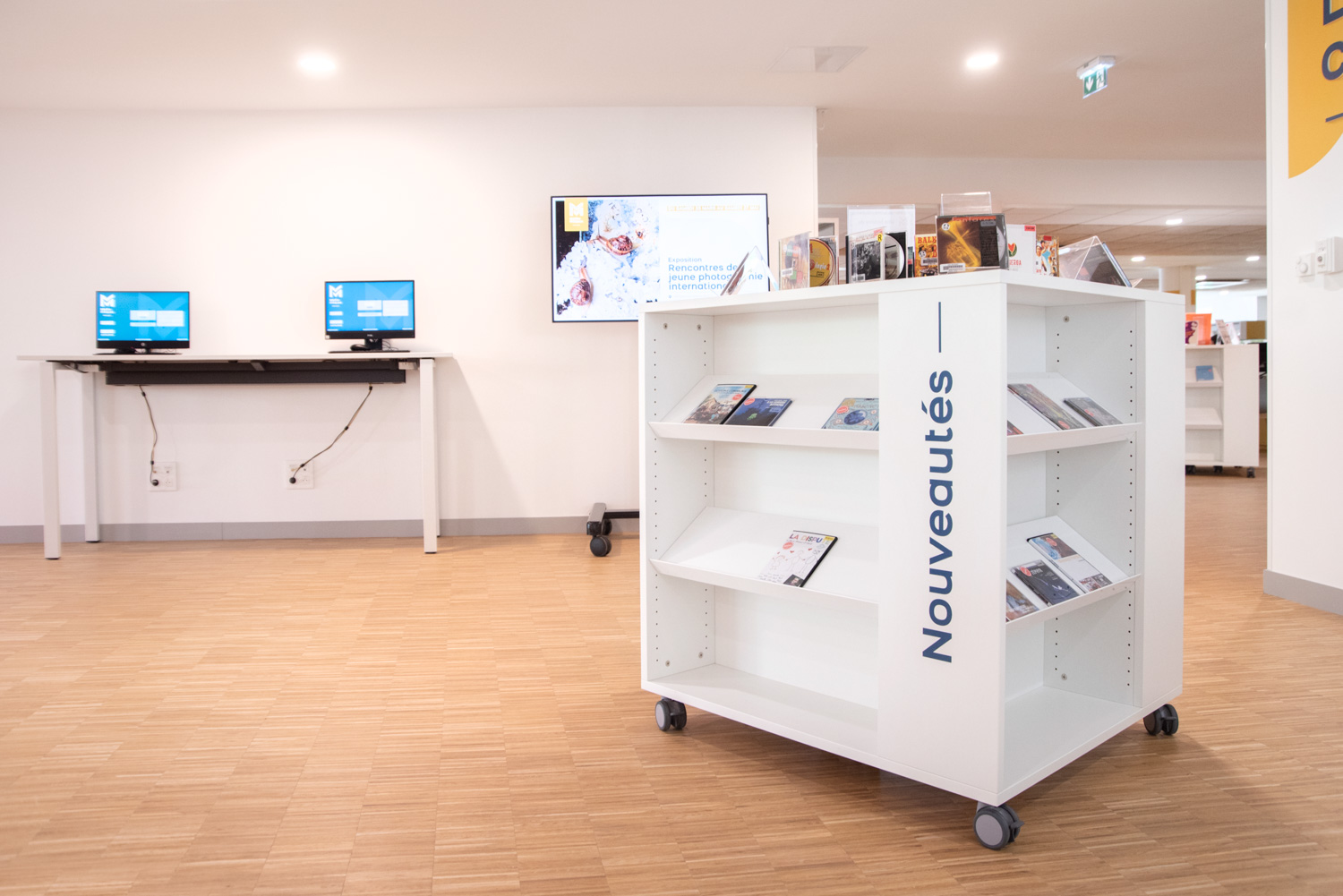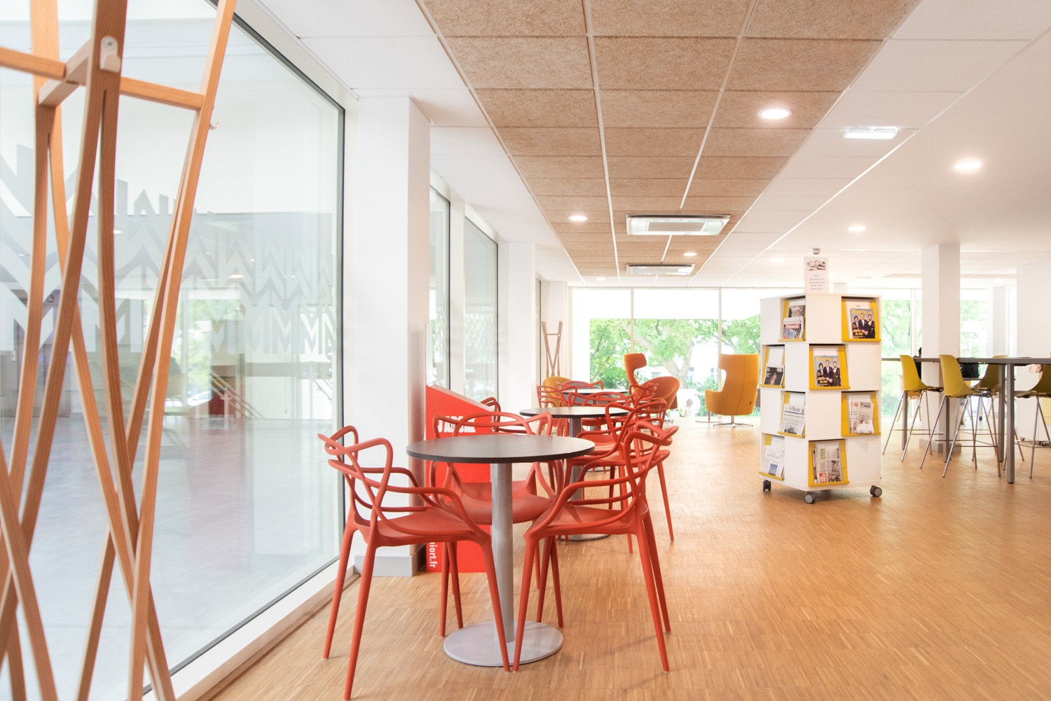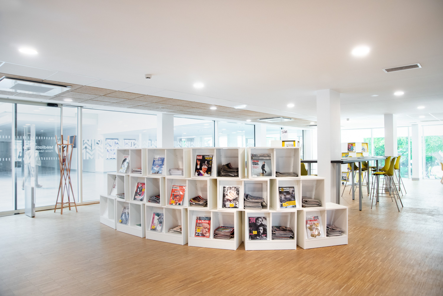 Les nouveaux espaces sont : un Auditorium de 100 places, des espaces de travail et un salon avec la presse écrite, jeux de société et un espace jeux vidéo.