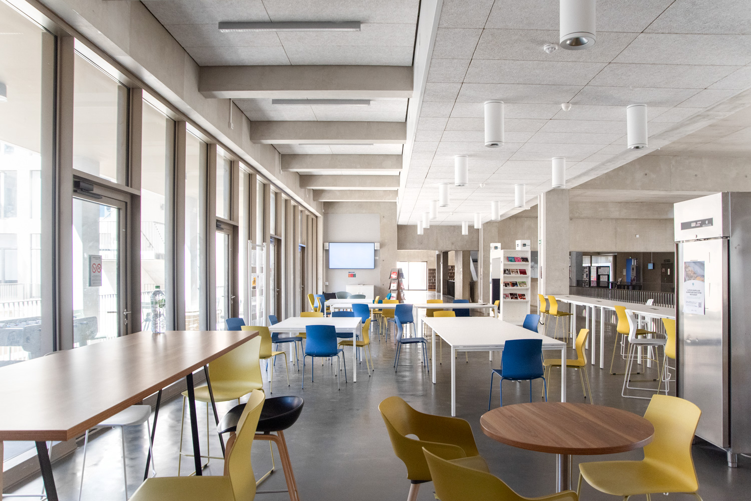 La bibliothèque / Centre de Ressources Documentaires et Numériques (CRDN) a donc été totalement repensée afin de pouvoir proposer différents espaces aux élèves, enseignants et personnels. Conçu comme un « troisième lieu » avec de larges créneaux d’ouvertures, le CRDN offre à ses usagers de nombreux services et ressources documentaires.