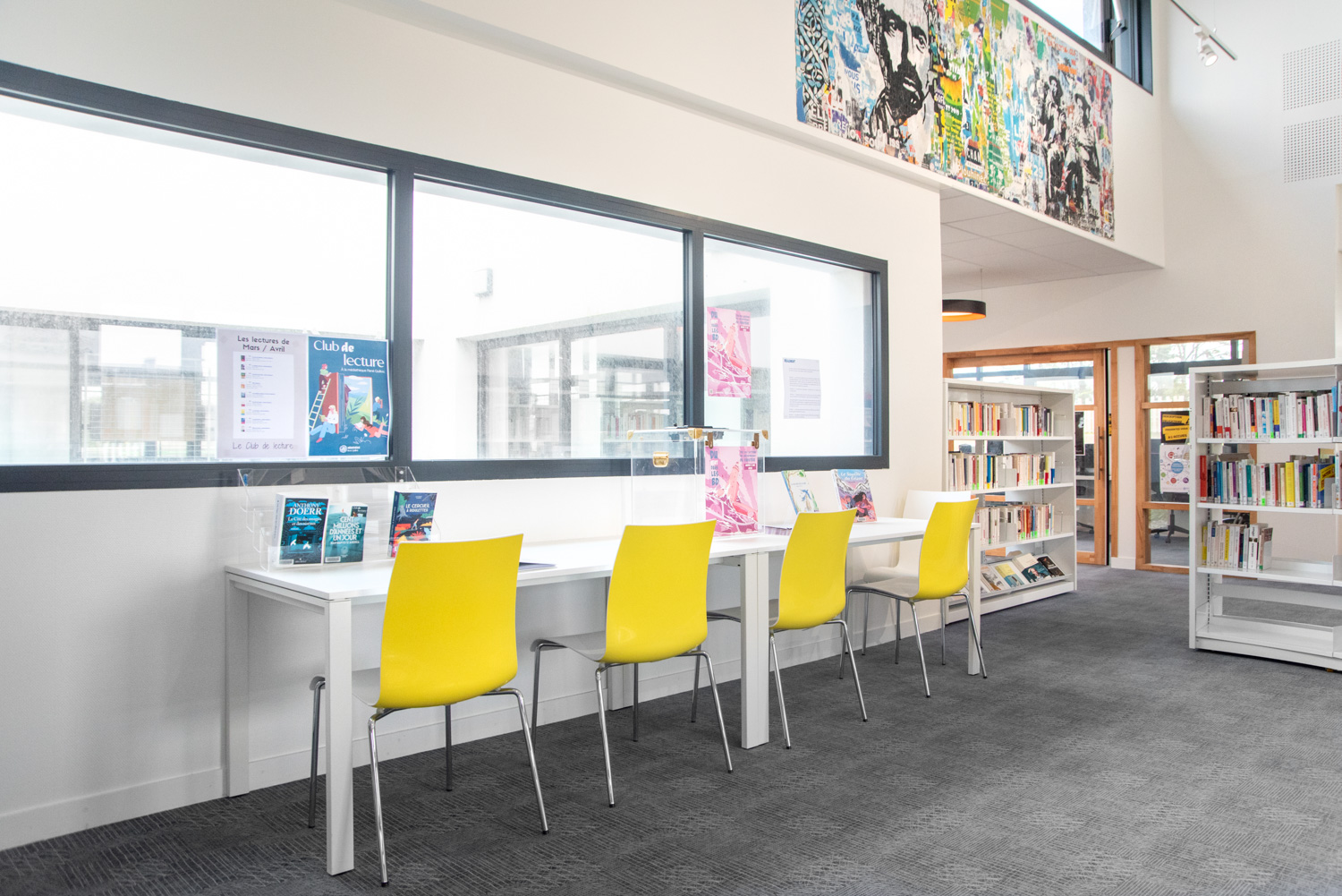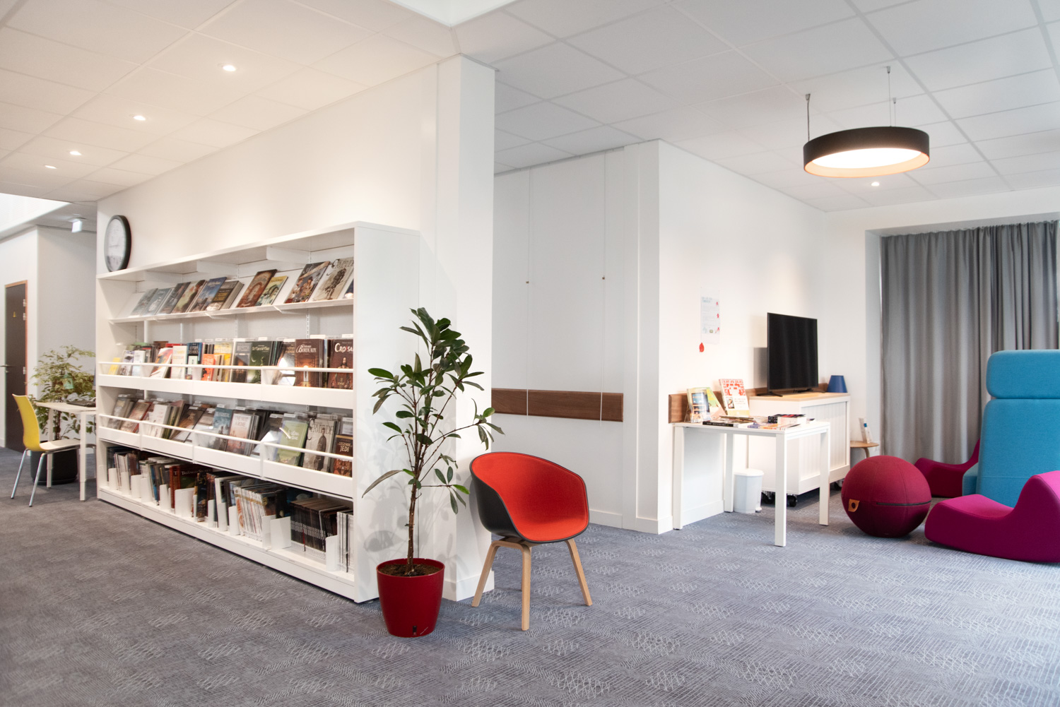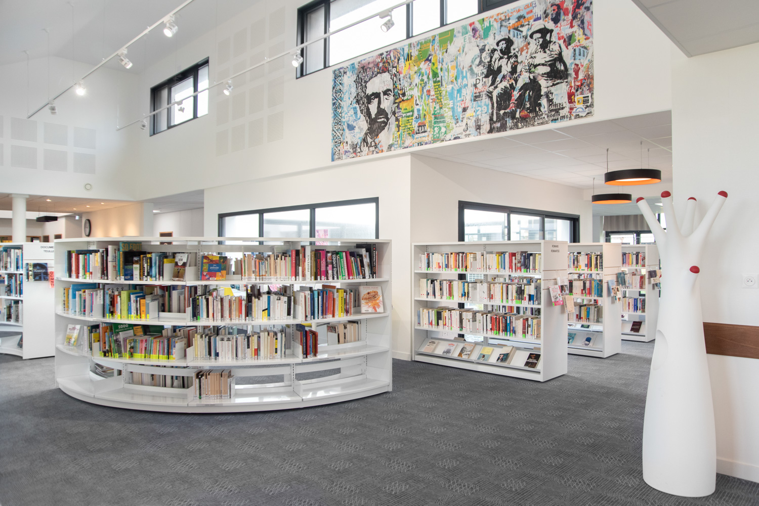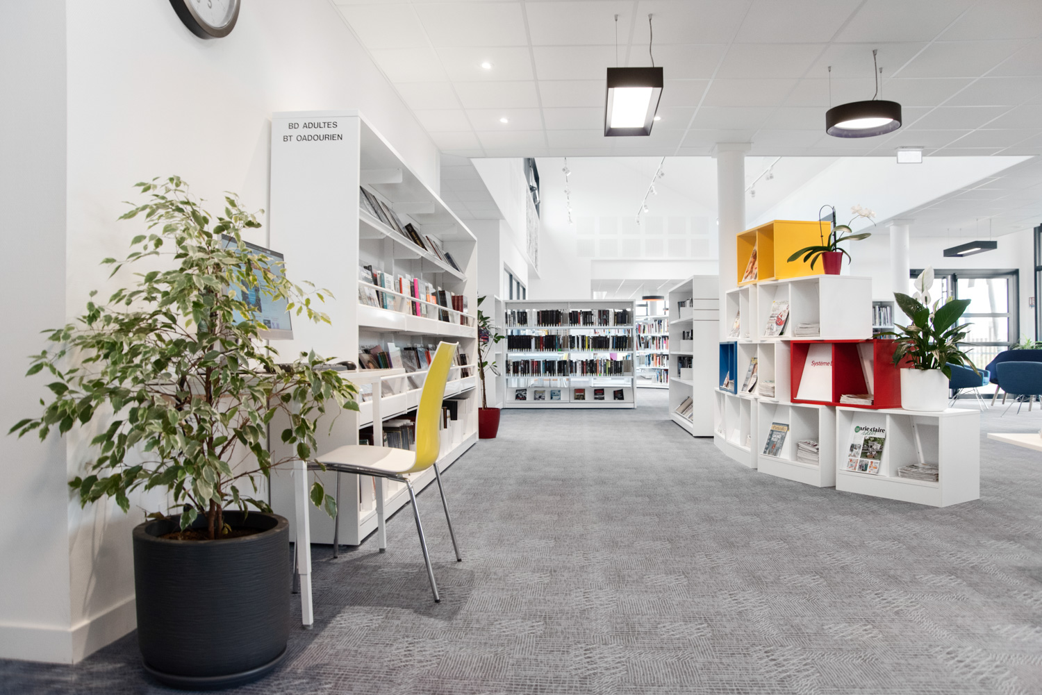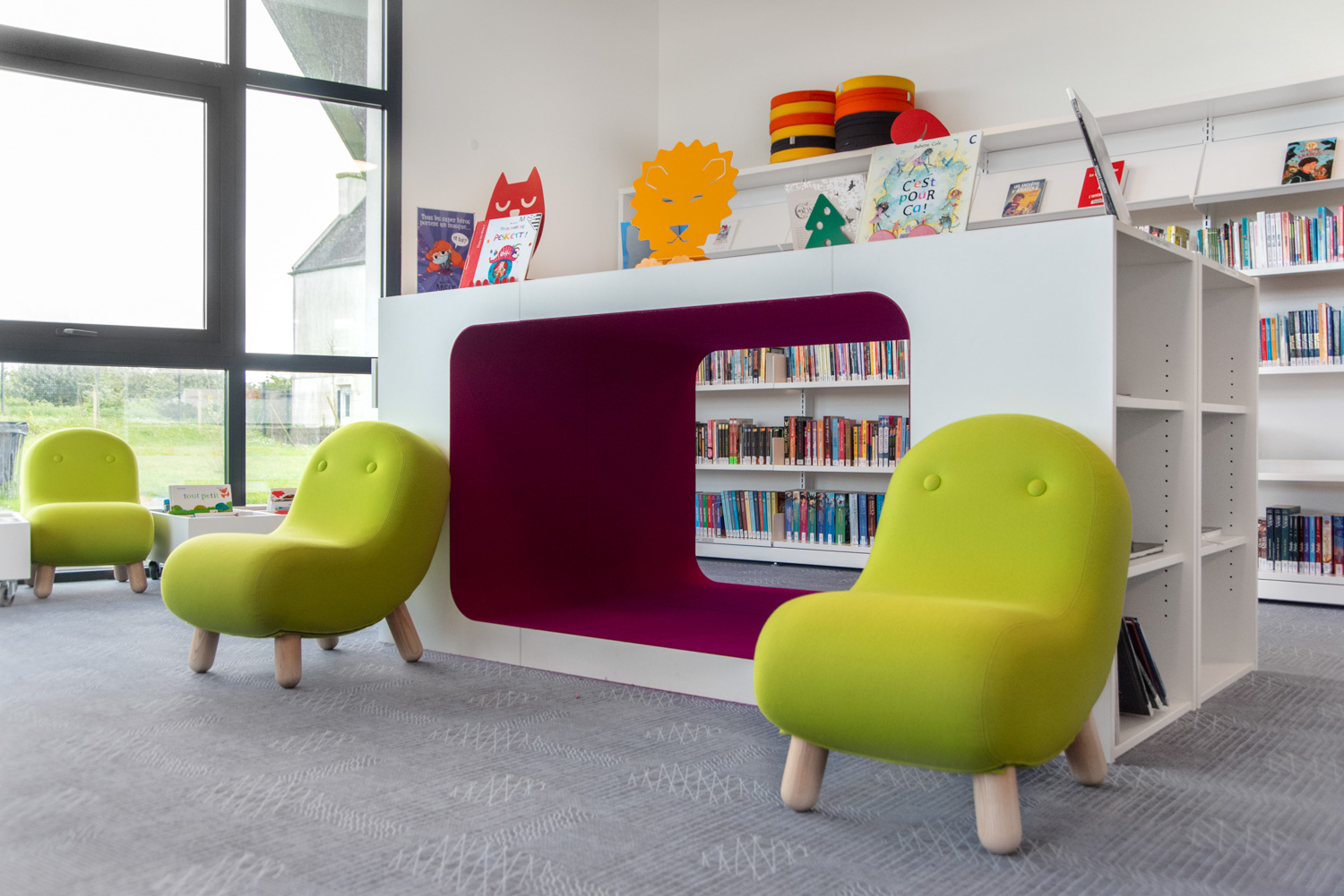 500m2 d’espace confortable et judicieusement agencé. La Médiathèque René Quillivic a ouvert ses portes en décembre 2020. Avec près de 10000 livres et des mobiliers originaux (Cocoon chez les enfants) par exemple, ou (rayonnage cintré chez les Adultes). Le public trouve en ce lieu les espaces et l’esprit convivial de cette mediatheque.