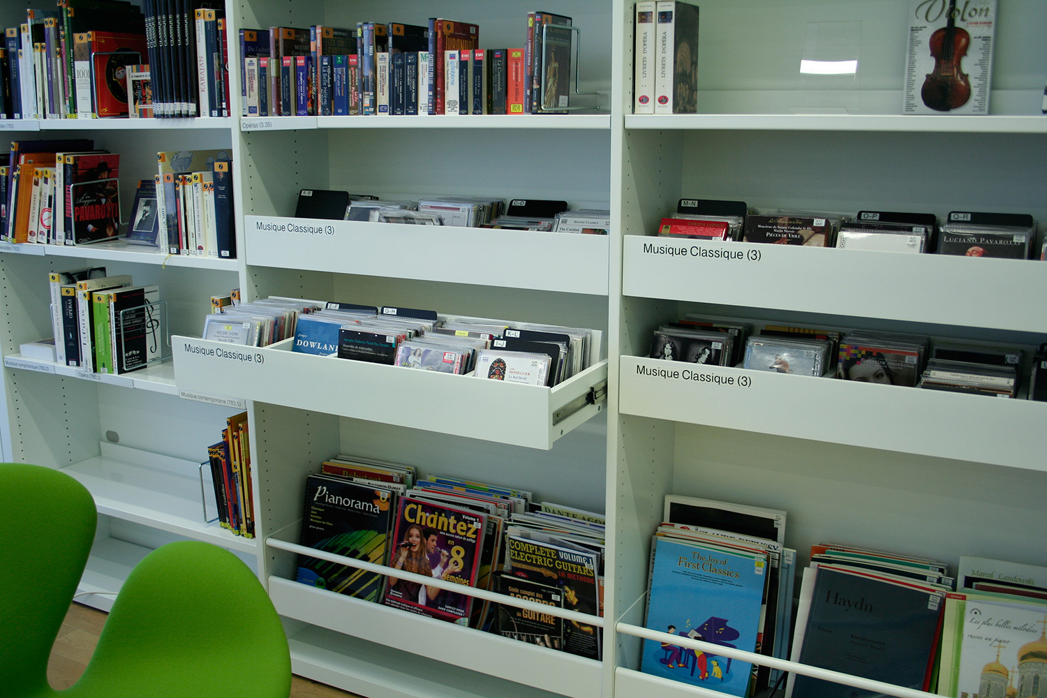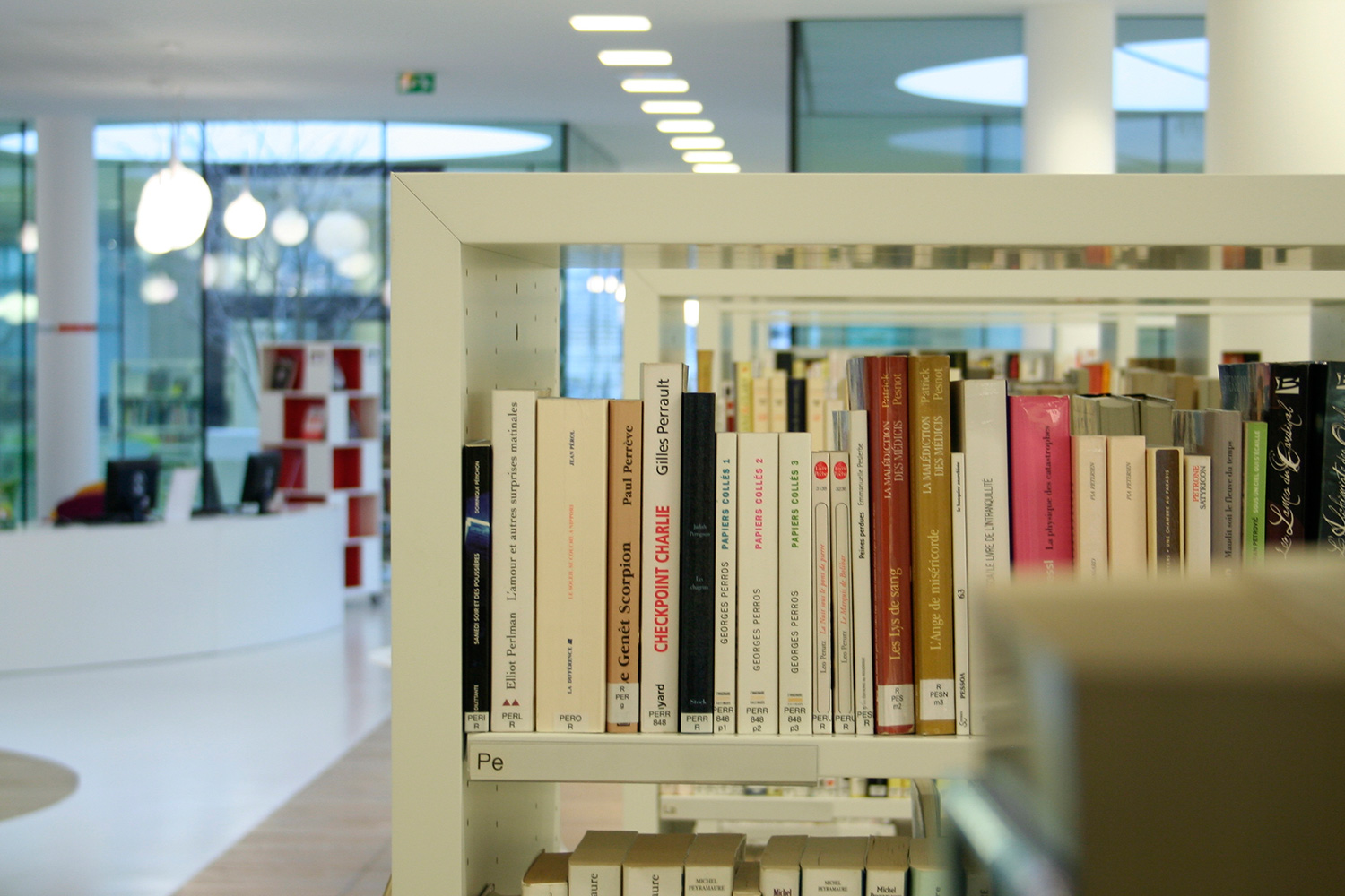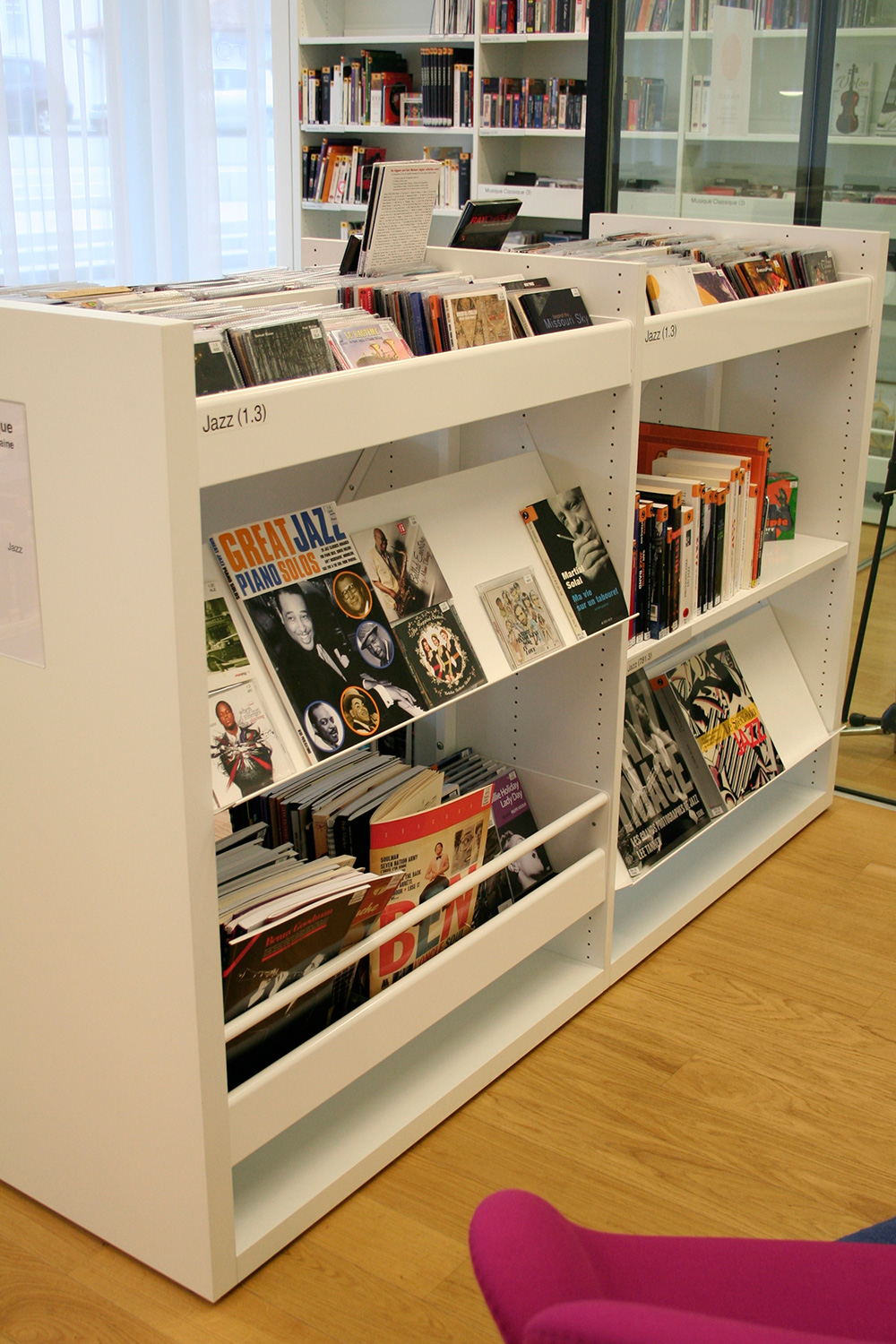 Dans certains endroits les rayonnages ont été spécialement intégrés dans des niches, tenant compte des bouches d’aération, chauffages et installations électriques.