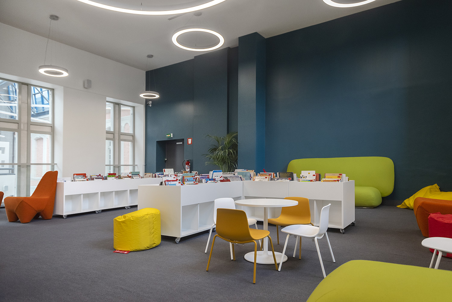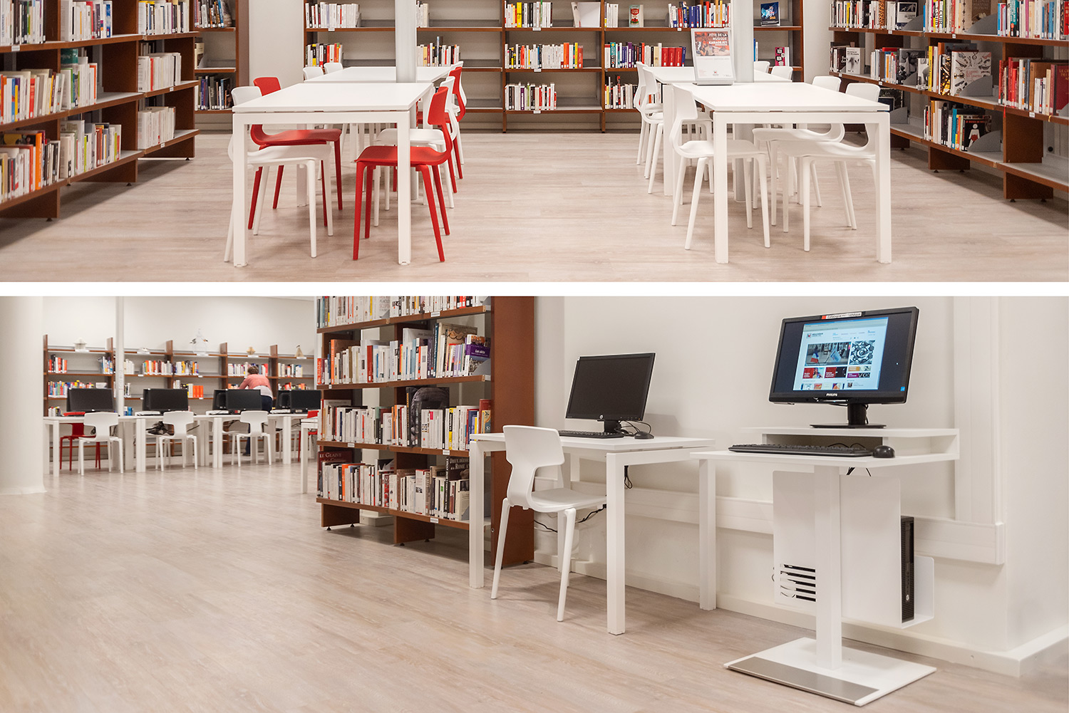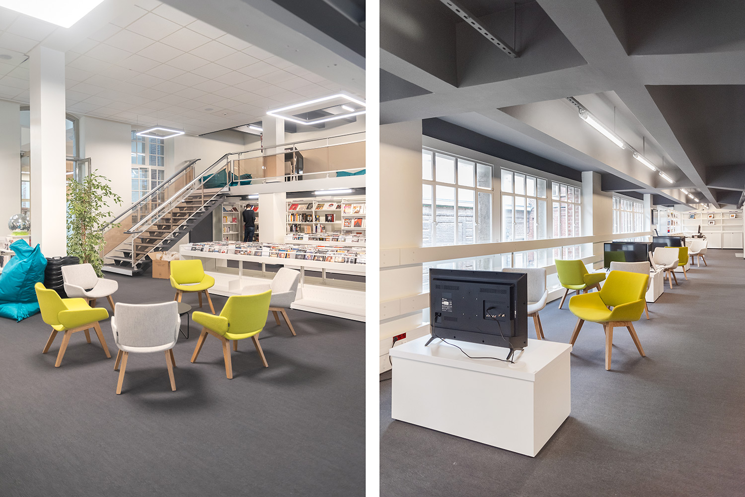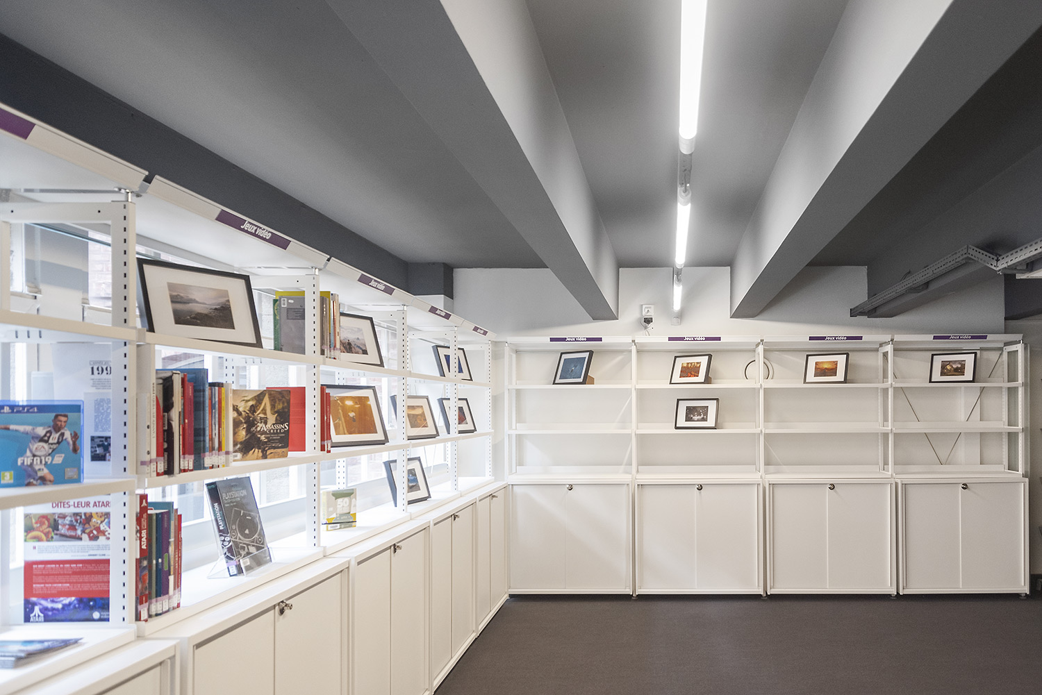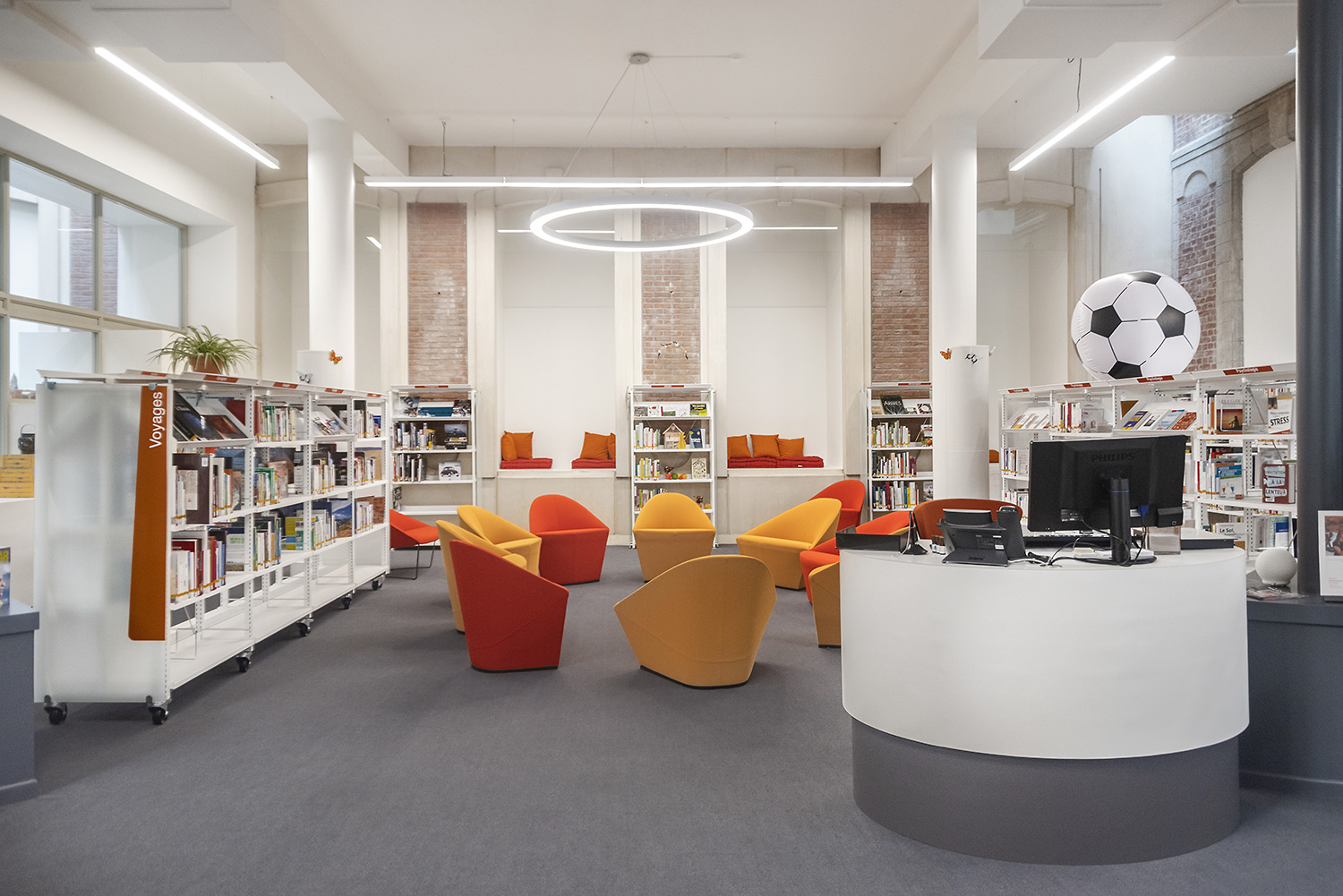 La médiathèque Simone Veil de Valenciennes s'est complètement transformée en 2019 pour offrir un écrin et des services adaptés à un équipement de lecture publique du XXIème siècle. Le mobilier contemporain au design élégant vient ainsi souligner une architecture patrimoniale (la médiathèque est classée Monument Historique avec une origine remontant au XVIème siècle).