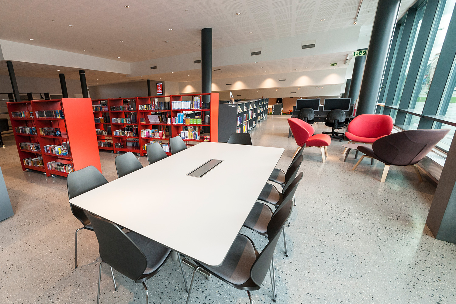 Notre société sœur, BS Eurobib, a fourni les rayonnages, le mobilier de bibliothèque ainsi que les solutions interactives.