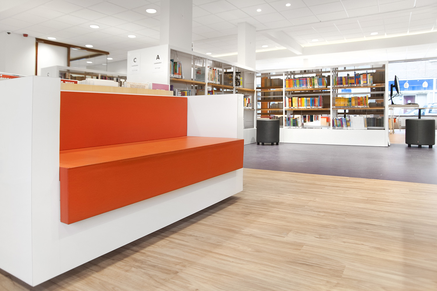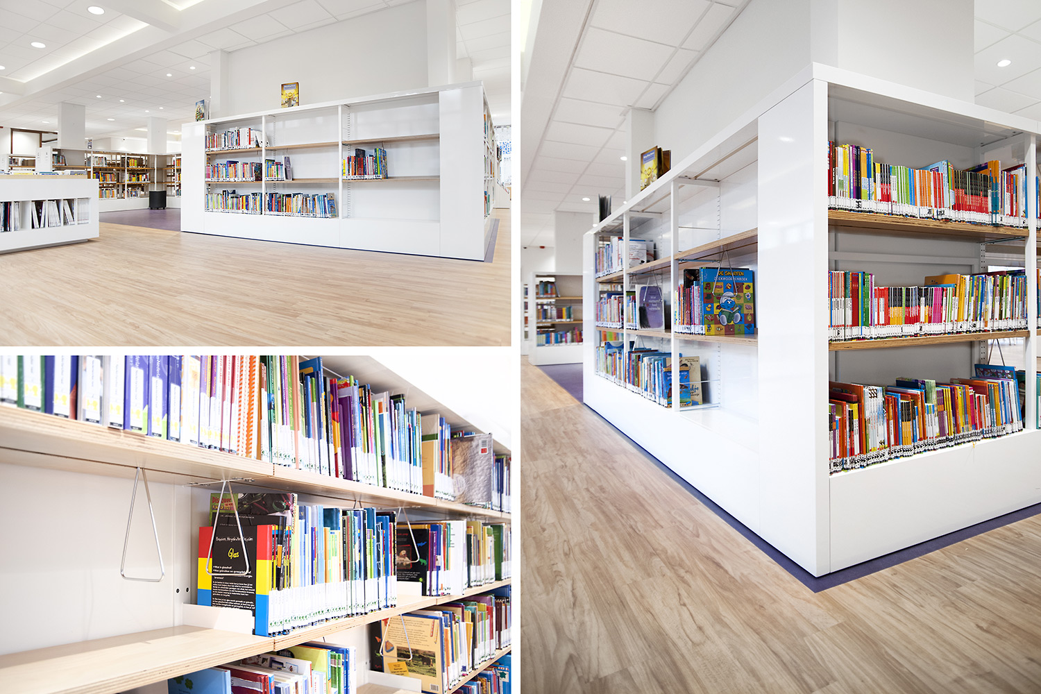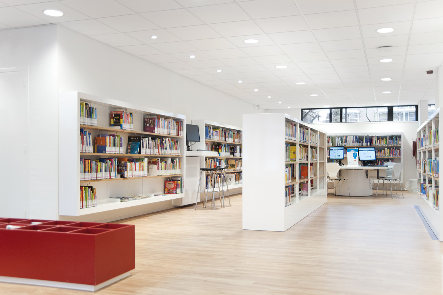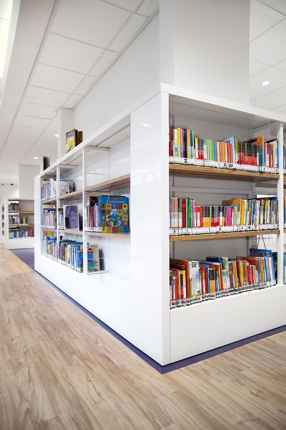Le design de la bibliothèque a été confié aux bureaux d’architectes +31ARCHITECTS et Millies. L’intérieur lumineux et spacieux a été aménagé avec du mobilier personnalisé et des rayonnages standard Uniflex, qui donnent également l’impression d’avoir été conçus sur mesure pour la bibliothèque.