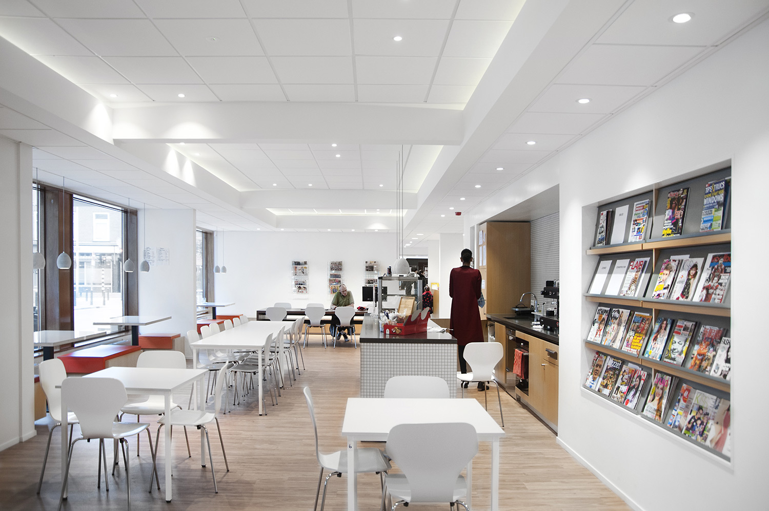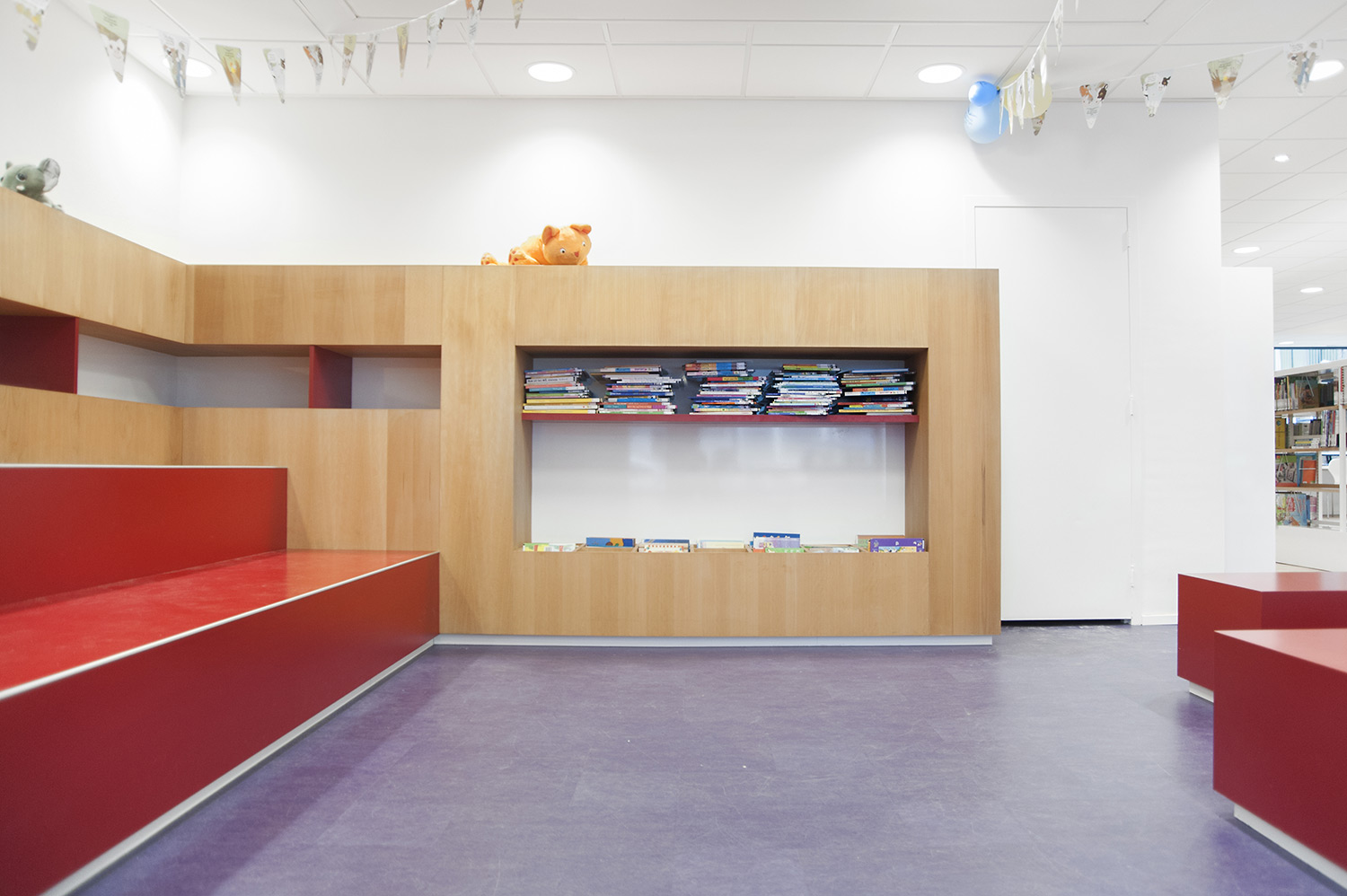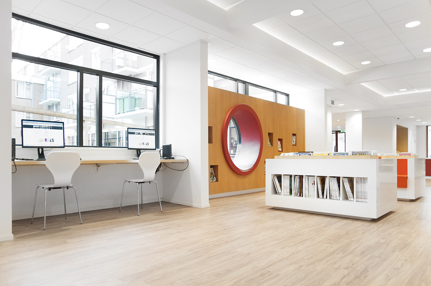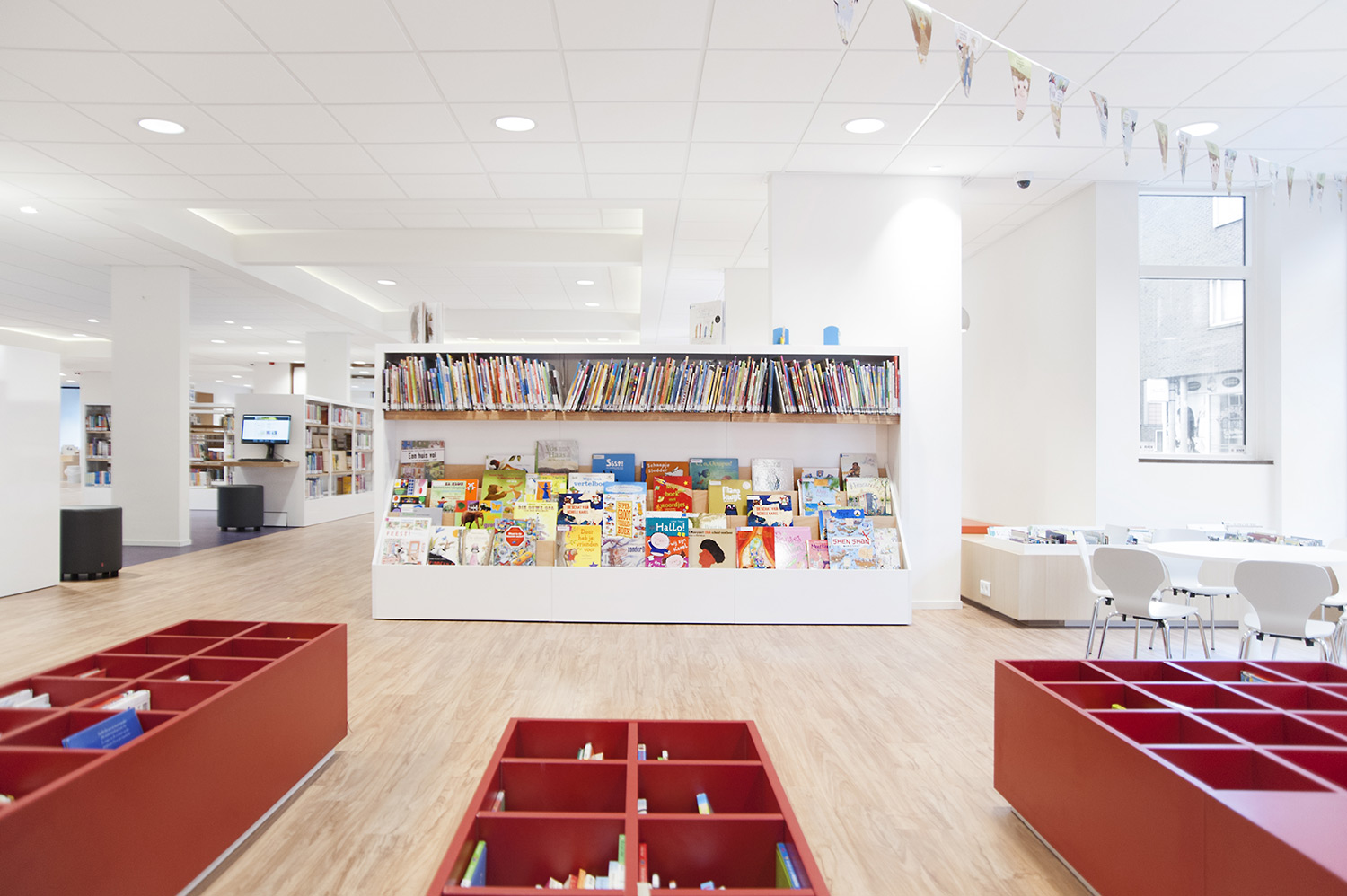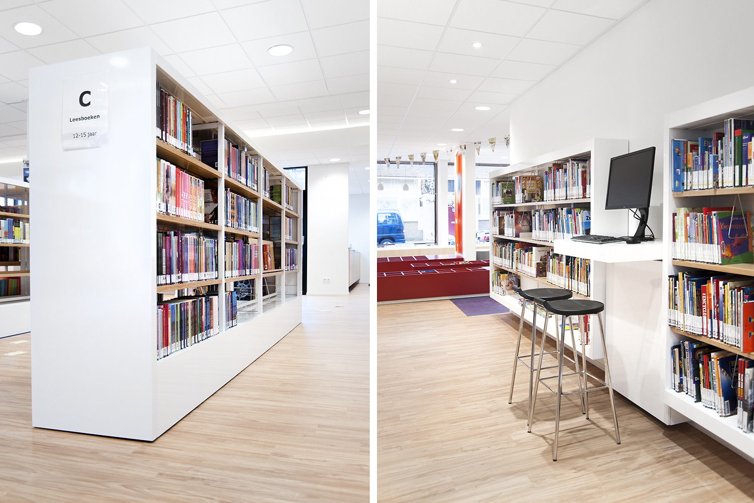 Le design de la bibliothèque a été confié aux bureaux d’architectes +31ARCHITECTS et Millies. L’intérieur lumineux et spacieux a été aménagé avec du mobilier personnalisé et des rayonnages standard Uniflex, qui donnent également l’impression d’avoir été conçus sur mesure pour la bibliothèque.