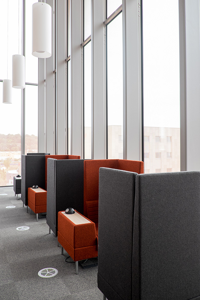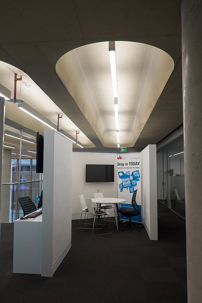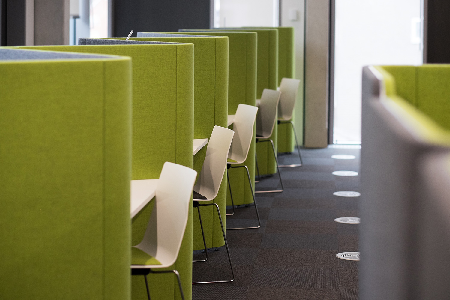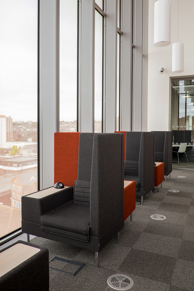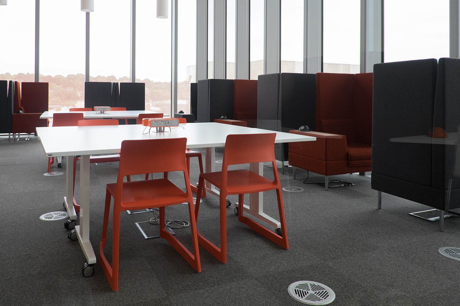 Travaillant en étroite collaboration avec l’équipe de projet de l’université et MCW Architects, thedesignconcept est parvenue à agencer avec succès un ensemble de meubles divers de part en part du bâtiment, dont :