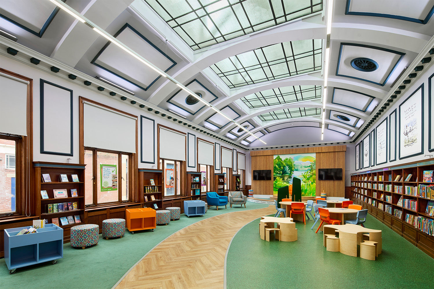 Avec une section entière du bâtiment consacrée à la créativité, à la robotique, à la programmation informatique et à l'impression 3D, la bibliothèque s'adresse désormais à un nouveau groupe d'utilisateurs. Associant ses éléments patrimoniaux et son mobilier moderne, la bibliothèque a été restaurée pour aussi permettre aux gens de se rencontrer et de s'essayer à l'artisanat ou à des technologies nouvelles telles que les casques de réalité virtuelle.