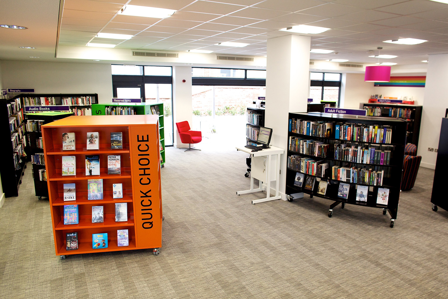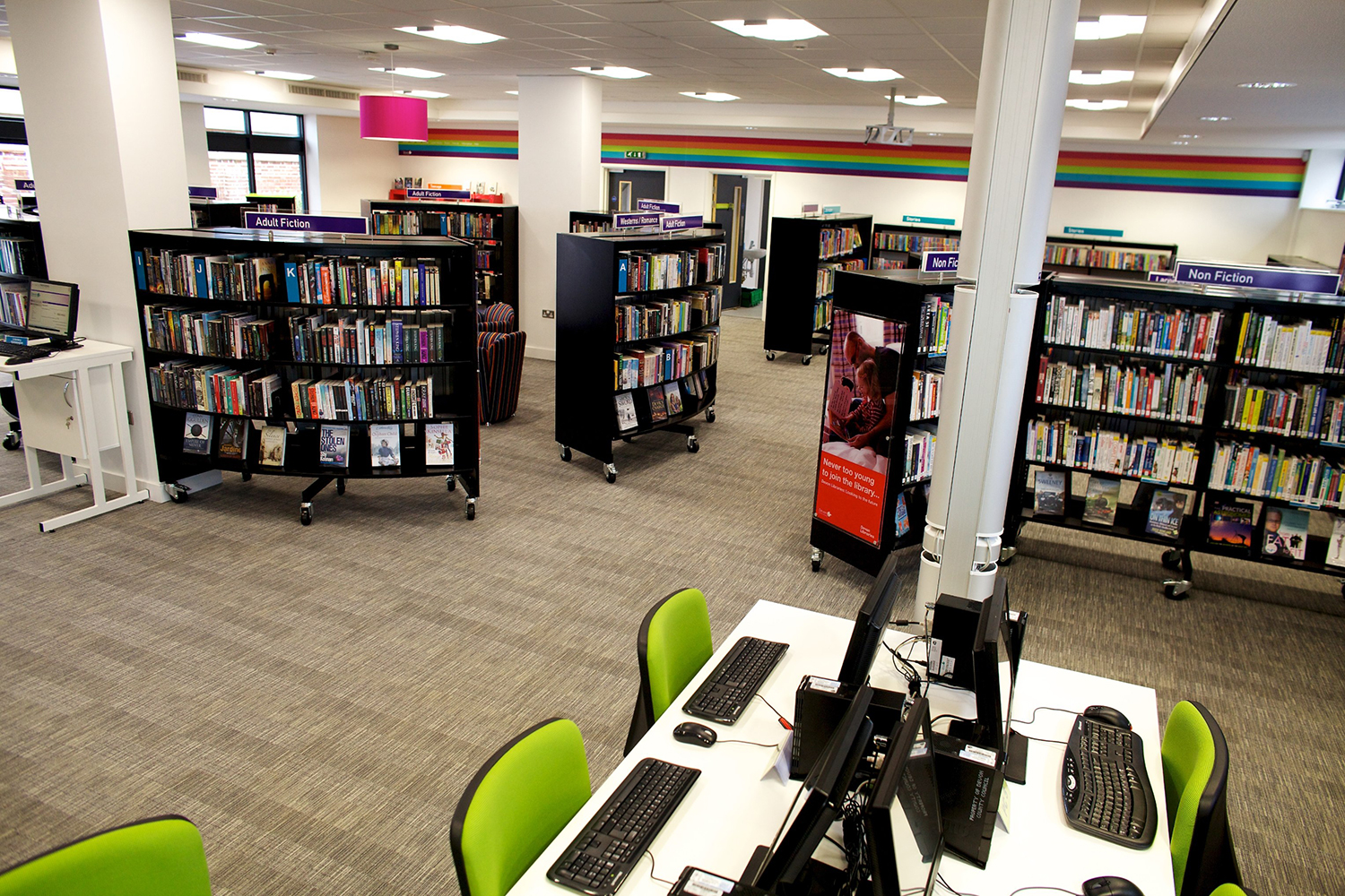 The new library is four times the size of the town’s previous one and the building is built in line with the latest in environmental design. BCI’s UK team have been involved in the design process and were responsible for the design and supply of all the graphic and signage for the building including bespoke made Braille signage.