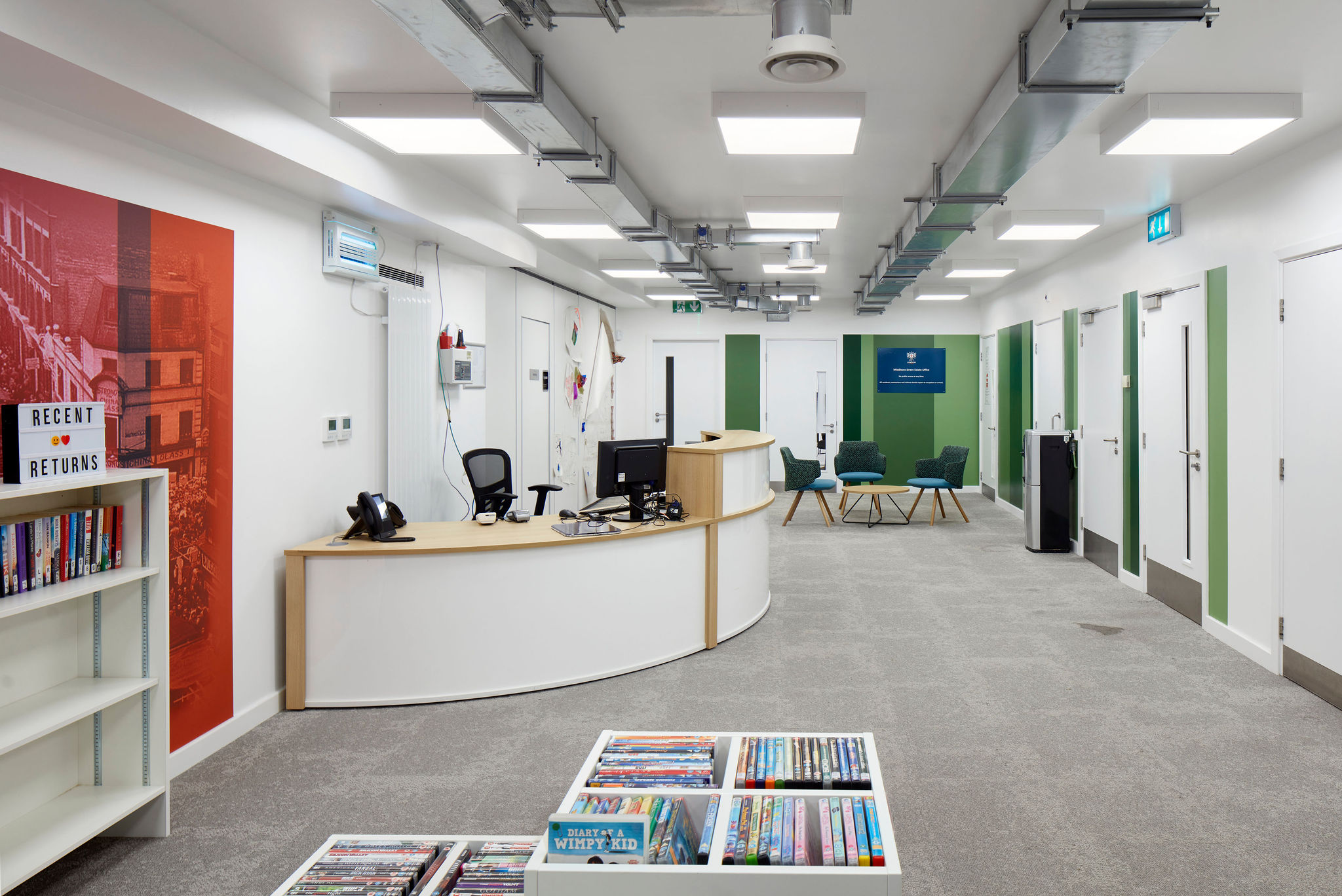 La bibliothèque et le centre communautaire d'Artizan Street sont construits sous une tour d'habitation en plein cœur de la ville de Londres. Le personnel de la bibliothèque d'Artizan Street fournit de précieux services de proximité en matière de logement, en répondant aux demandes des résidents concernant le stationnement des véhicules, les paiements et de nombreux autres besoins quotidiens dans ce domaine.
