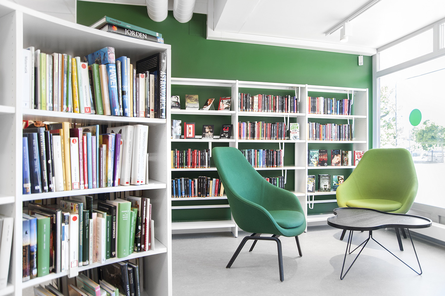 La bibliothèque de Kallhäll est la première bibliothèque ouverte et en libre-service de la municipalité de Järfälla