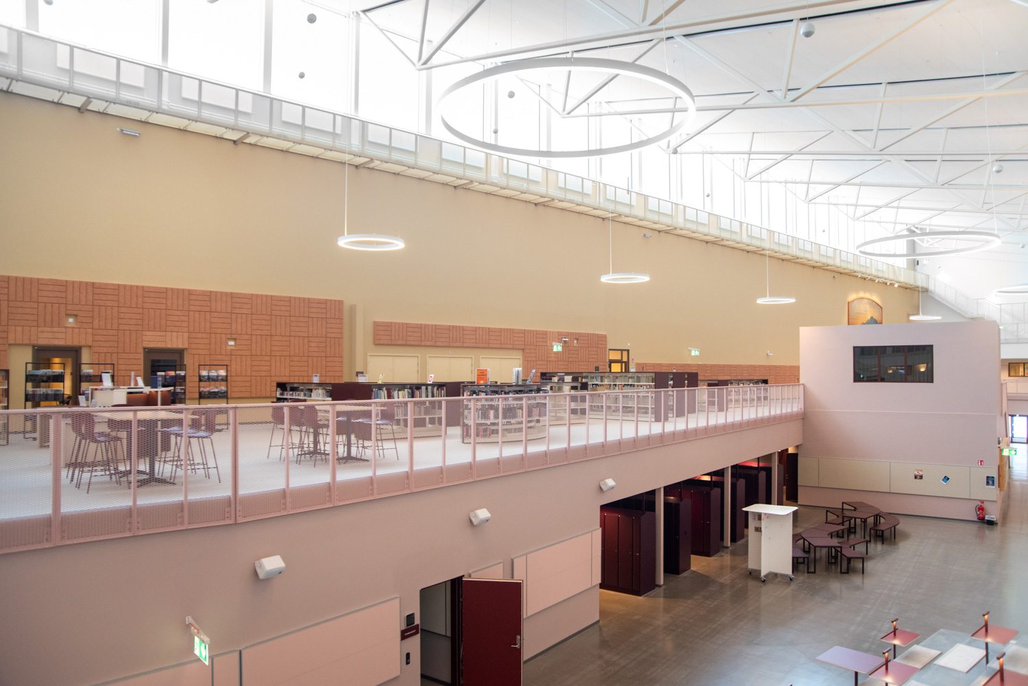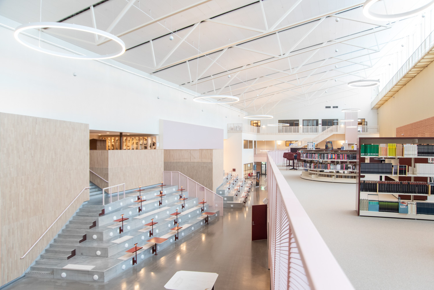 Le cœur du site est une place centrale qui forme un lien entre la cité des savoirs et le reste du centre-ville. De là, le visiteur est conduit dans un vaste atrium, où les activités de la ville et de l'école se rencontrent dans un espace commun et public. La bibliothèque est également située dans cet ensemble, où une abondante lumière du jour provient de larges baies vitrées situées près du toit. Lesquelles invitent les usagers à lever les yeux vers le ciel et à suivre les différentes caractéristiques des saisons.
