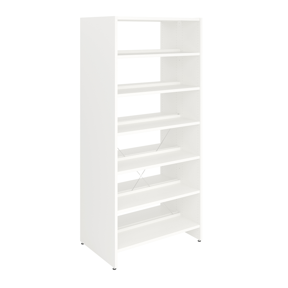 Choisissez parmi trois hauteurs standard comprenant des étagères réglables avec butée arrière pour une flexibilité maximale. Les étagères du haut, du bas et du milieu sont fixes et les autres étagères peuvent être repositionnées très facilement.