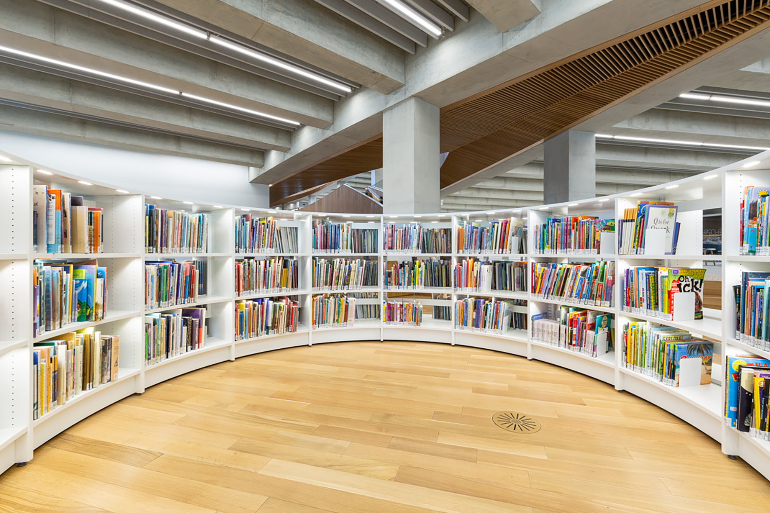 Le rayonnage courbe Slimline/Frontline ouvre un nouvel univers de présentation et de rangement des imprimés. Il vous permet de créer de petites Zones de lecture ou des îlots thématiques propices aux lecteurs pour s’isoler. Ce système vous permet de créer des cercles presque complets ou des agencements en S dans votre bibliothèque.