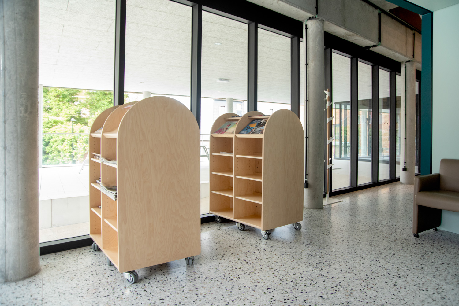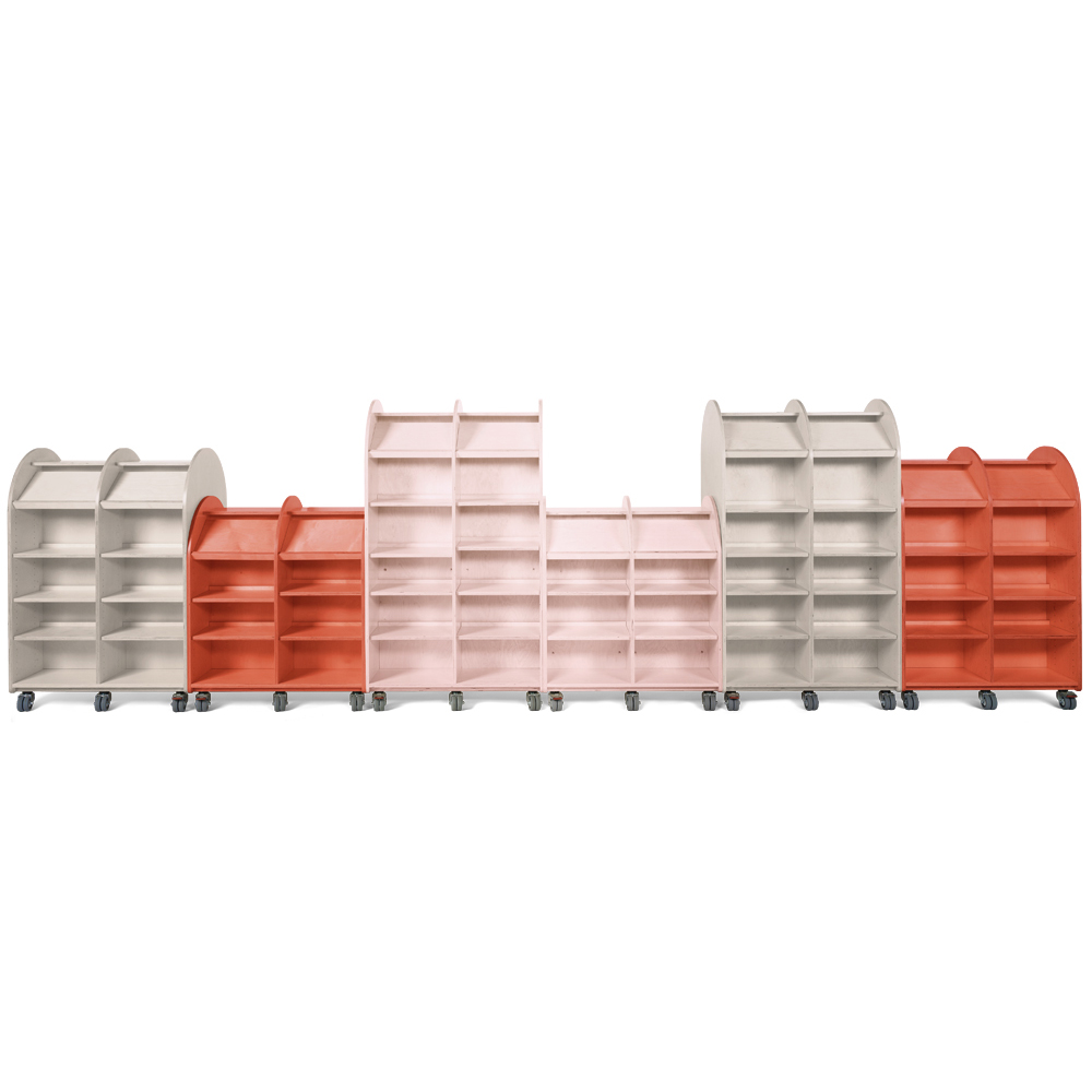 Aménagez des «espaces urbains» inspirants avec des modules de hauteurs, et profondeurs différents. Invitez les visiteurs à déambuler le long de ces espaces agrémentés de «vitrines de présentation» attrayantes mettant en valeur des livres, des revues et bien d’autres choses encore ! Des points visibles par excellence pour tous les visiteurs.