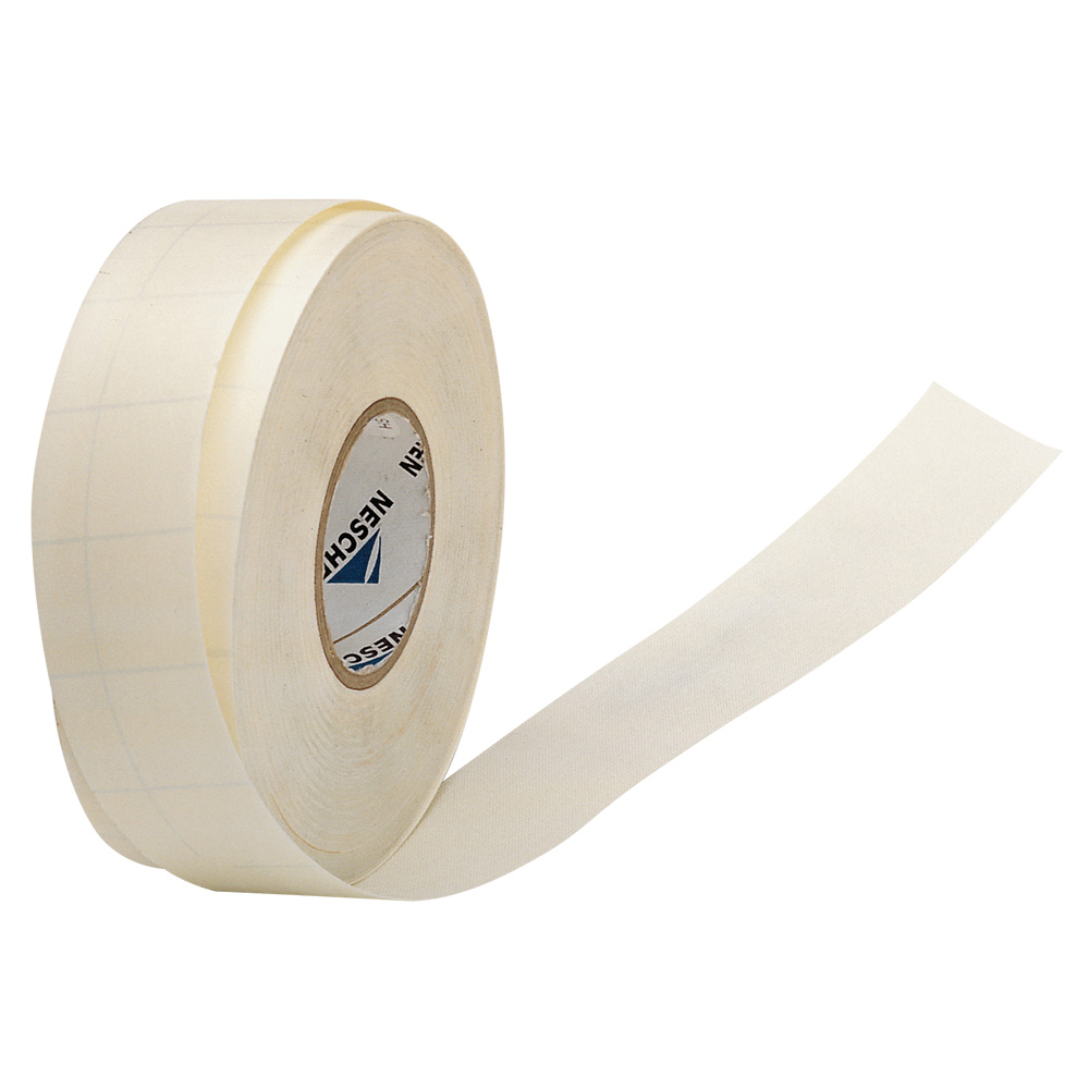 Ruban textile autocollant blanc sans acide (à points fins). Resistant a la déchirure.